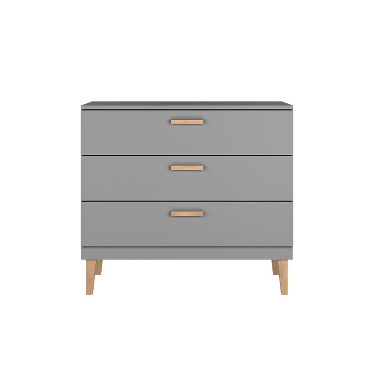 Modern gray KUBI chest of drawers with 3 spacious drawers. The chest of drawers is suitable for children's rooms for children and students. The timeless Scandinavian style of the chest of drawers testifies and combines perfectly with other pieces of furniture from the same collection.