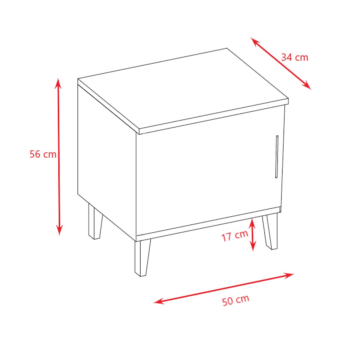Modern bedside table KUBI for children's room. The door is double-sided, it only depends on you on which side you mount it. The interior space behind the bedside door is divided into 1 part by 1 practical shelf. Practically, you have 2 shelves for storing things.