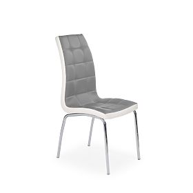 Modern dining chair with grey and white eco-leather upholstery. .. more