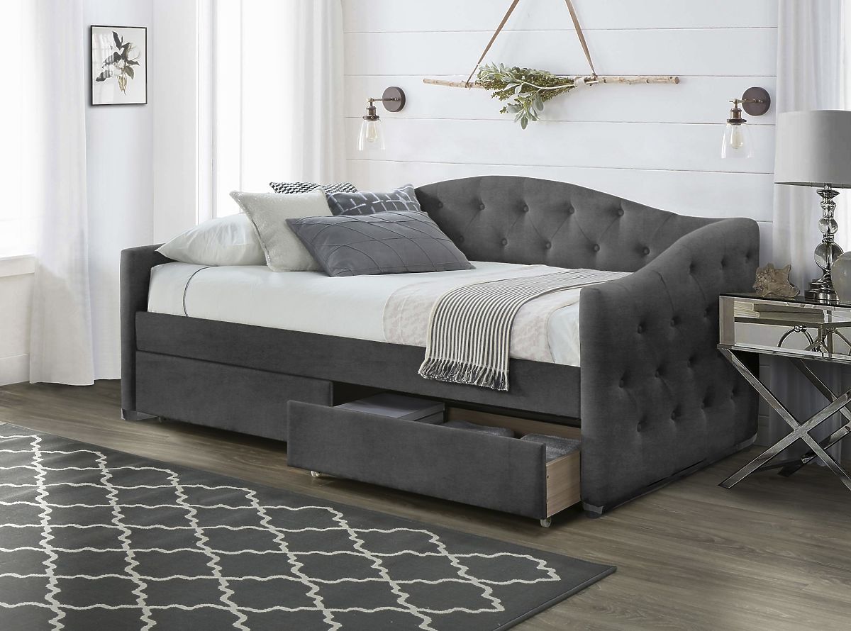 Lukahome.co.uk » Postele / Jednolůžkové postele / Upholstered bed with drawers ALOHA 90 x 200 cm - Dark grey