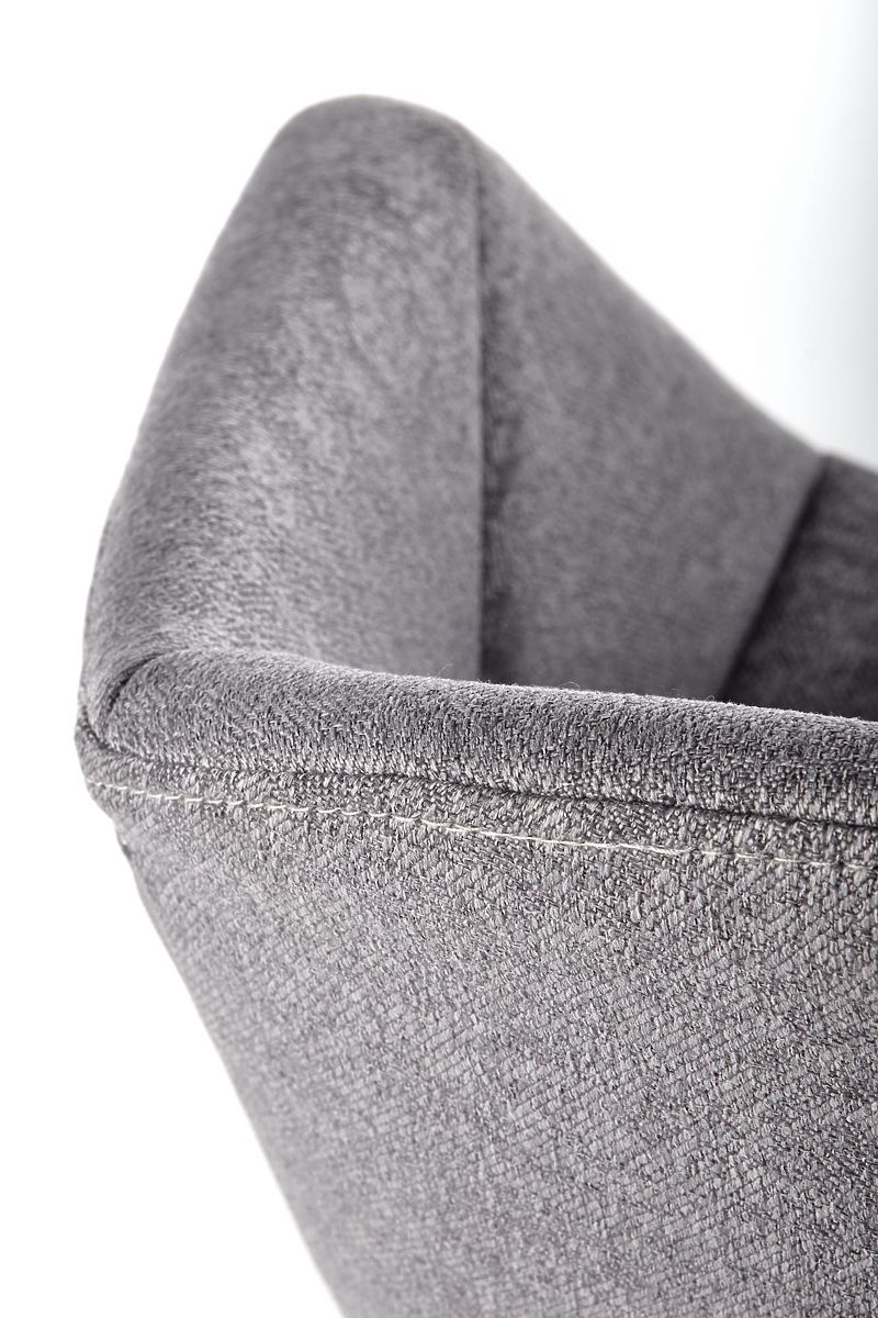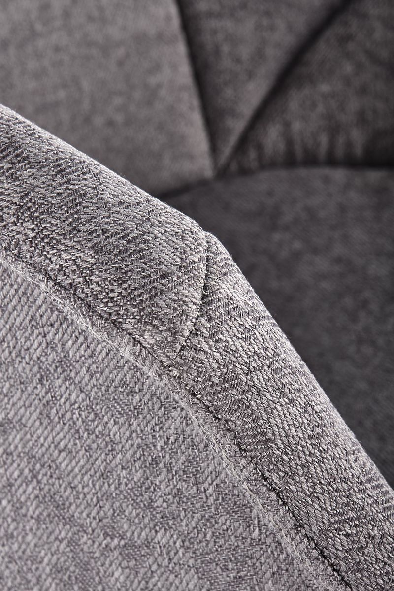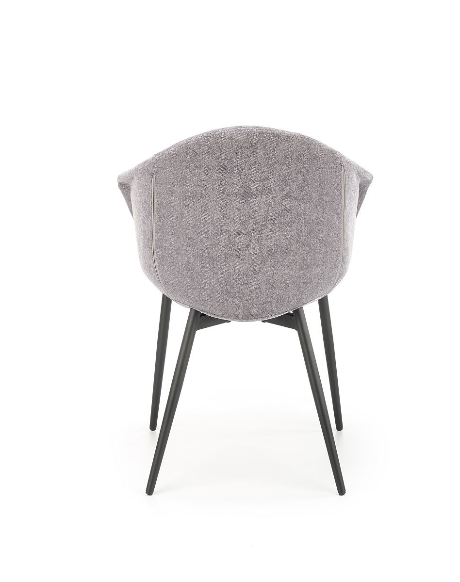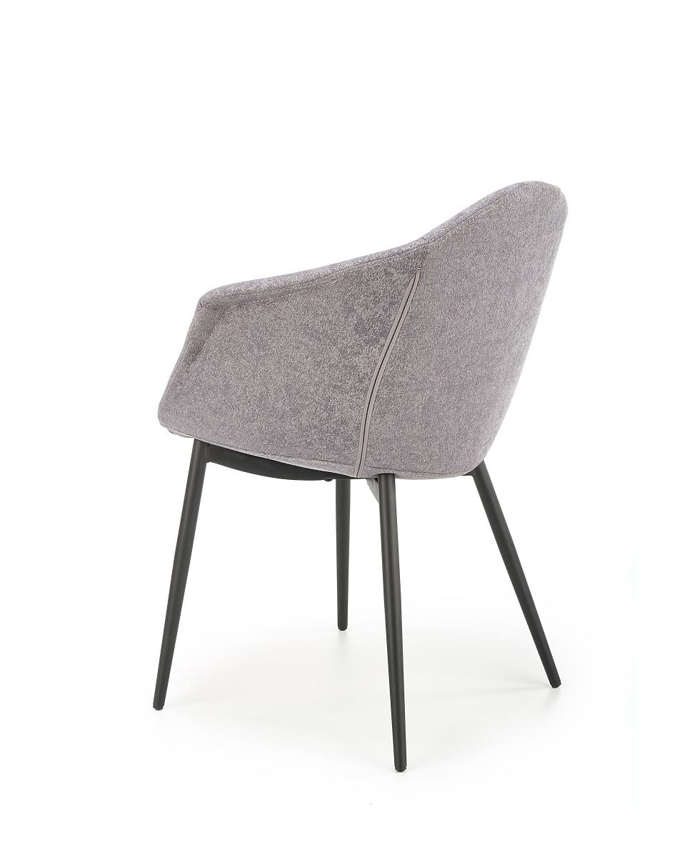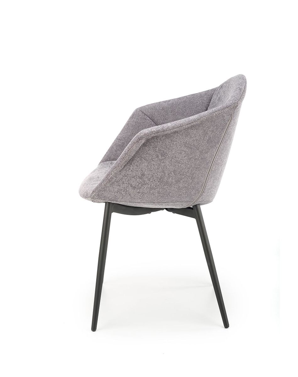 The seat and backrest are upholstered in a pleasant grey fabric. The frame is made of black powder-coated steel.