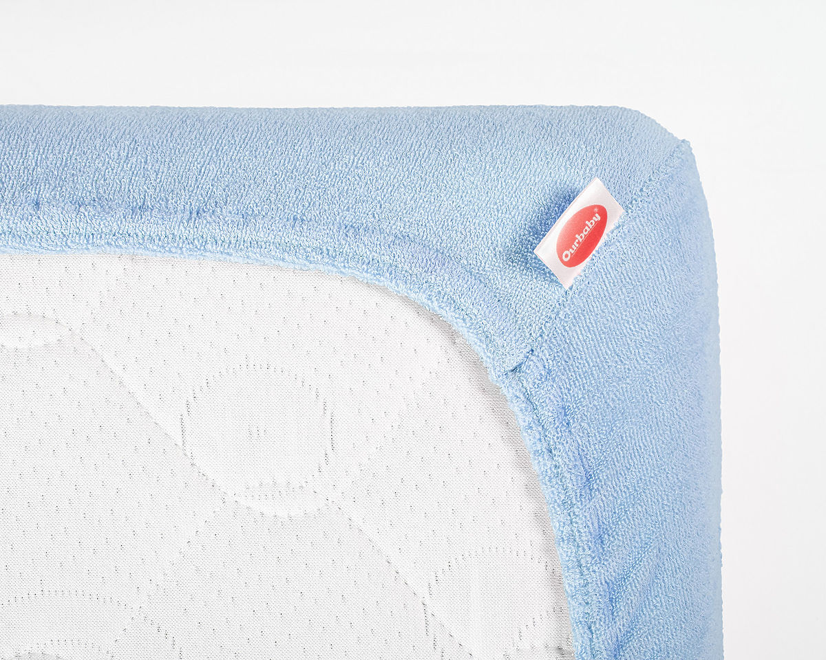 Terry fitted sheet in light blue color . Popular terry sheets offer high comfort and convenience. They are made of durable and easy-to-maintain material with a very pleasant surface.