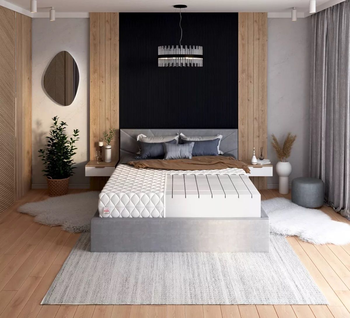 The double-sided Goya Max Plus foam mattress with a height of 26 cm was created for all lovers of quality and comfortable sleep. Thanks to a number of transverse and longitudinal cuts , the mattress is divided into 7 zones . As a result, a significant increase in plasticity was achieved, which provides excellent support for the spine .