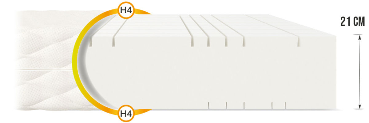 HR foam is characterized by an uneven cell structure, achieving better body support, comfort, and elasticity. The mattress perfectly adapts to the shape of the body while remaining very light. The material is resistant to deformation and extraordinarily durable. The porous structure ensures perfect air circulation and prevents the growth of fungi and mold. The surface, contour-cut in a grid form, features orthopedic properties.
