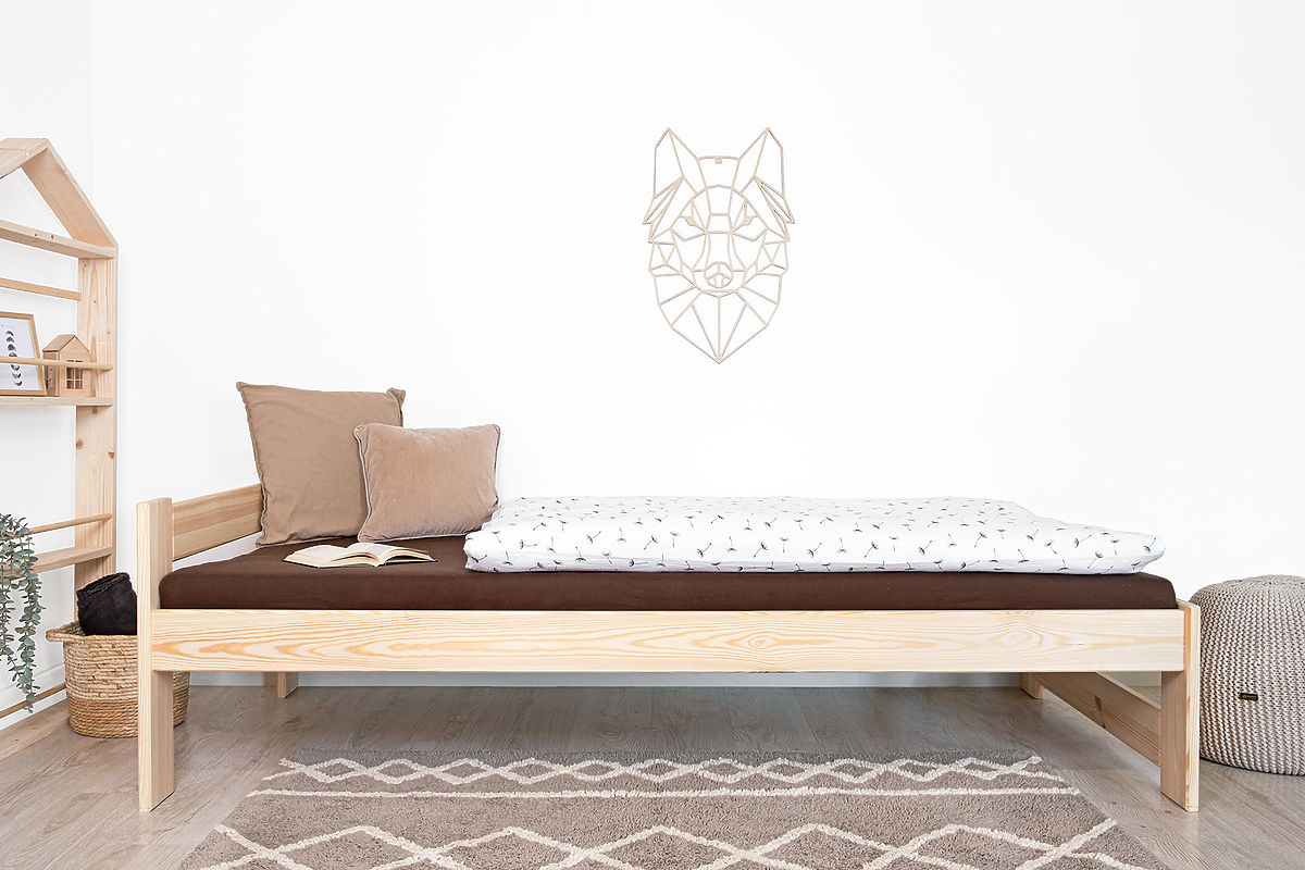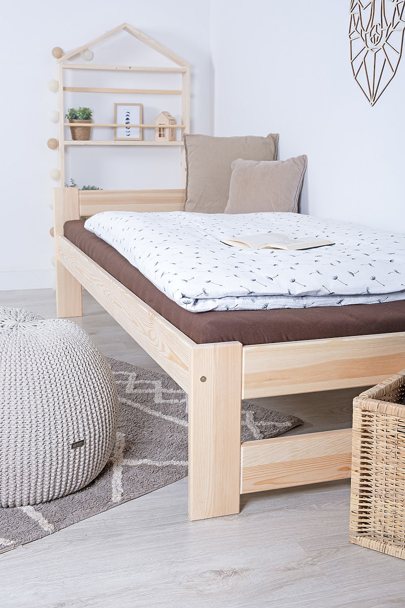 The lacquered Mel bed 200x90 is designed to bring authenticity to your interior. Each piece of the bed is made from carefully selected pine wood, which has been thoroughly treated with lacquer to enhance its natural appearance and texture. This lacquer also protects the wood from external influences and extends its lifespan.