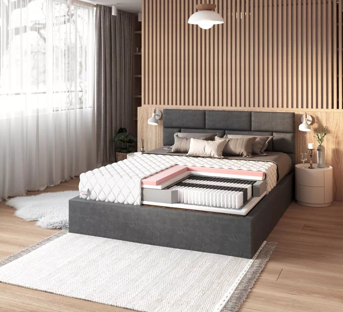 With the IVREA mattress with a height of 22 cm in a double-sided design, you can enjoy exactly the kind of sleep you need. It consists of several different layers, the basis of which are pocket springs with 7 zones of body support. Thanks to this, every part of your body will be in complete comfort during sleep. In addition, it reduces the discomfort resulting from the movements of the other person and thus ensures an uninterrupted deep sleep.