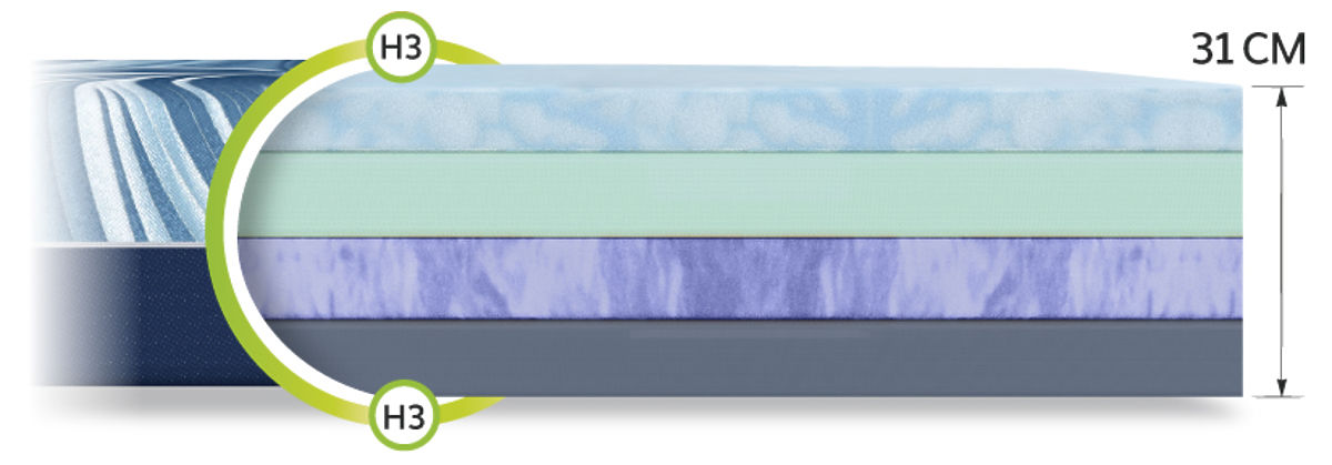 Experience perfectly comfortable sleep with the DREAMER LUX mattress, 31 cm in height. This innovative mattress is made from four layers of foam with varying degrees of hardness and elasticity, selected to have the best possible impact on healthy and peaceful sleep.