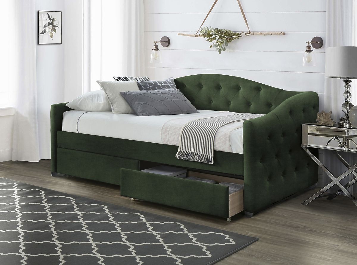 Lukahome.co.uk » Postele / Jednolůžkové postele / Upholstered bed with drawers ALOHA 90 x 200 cm - Dark green