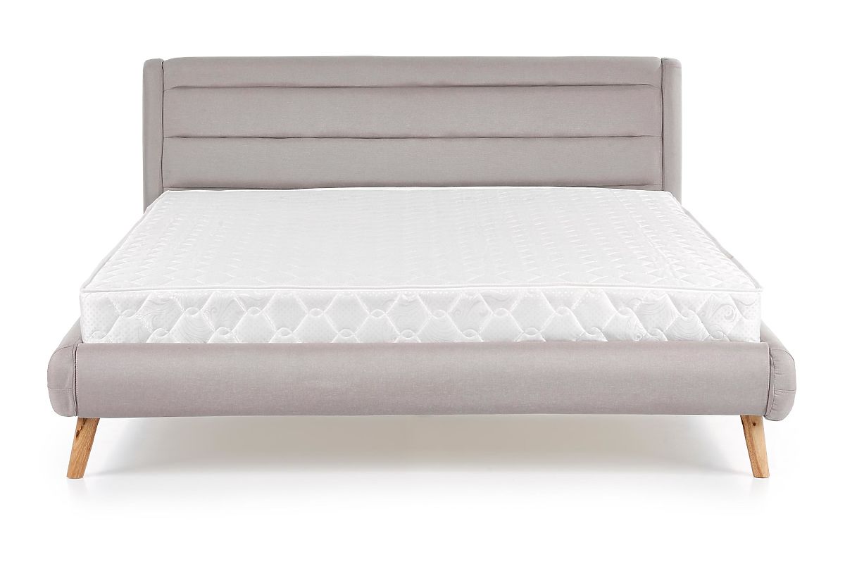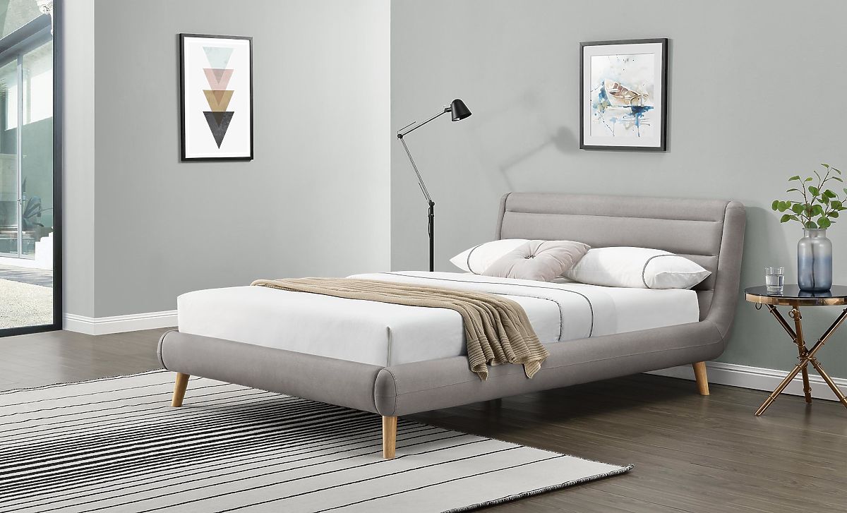 The ELANDA upholstered bed brings simple luxury to your bedroom. With dimensions of 160x200 cm, it provides enough space for two people to sleep comfortably. The low headboard gives the bed a modern and tasteful look. The short wooden legs of the Elanda bed add a natural and warm touch. Slatted slats provide support and comfort for your sleep.