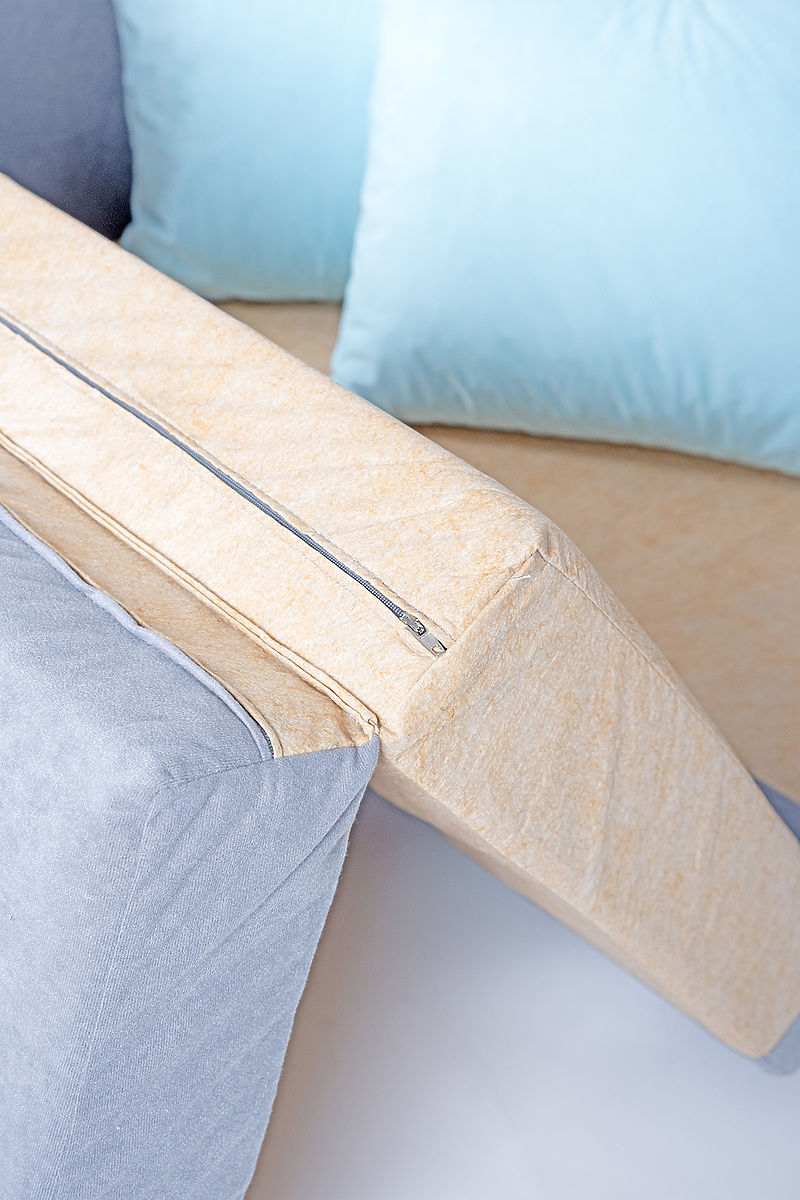 The sofa cover is made of 100% polyester, which is very durable and an ideal material for use in children's rooms. The sides and back are reinforced with a quality board, providing the sofa with stable support. The sofa comes with two large back cushions and a comfortable seat.
