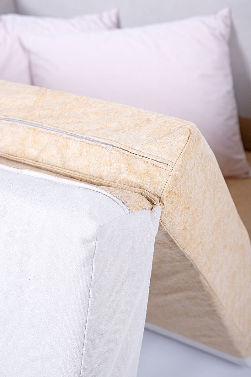 The sofa cover is made of 100% polyester, which is very durable and an ideal material for use in children's rooms. The sides and back are reinforced with a quality board, providing the sofa with stable support. The sofa comes with two large back cushions and a comfortable seat.