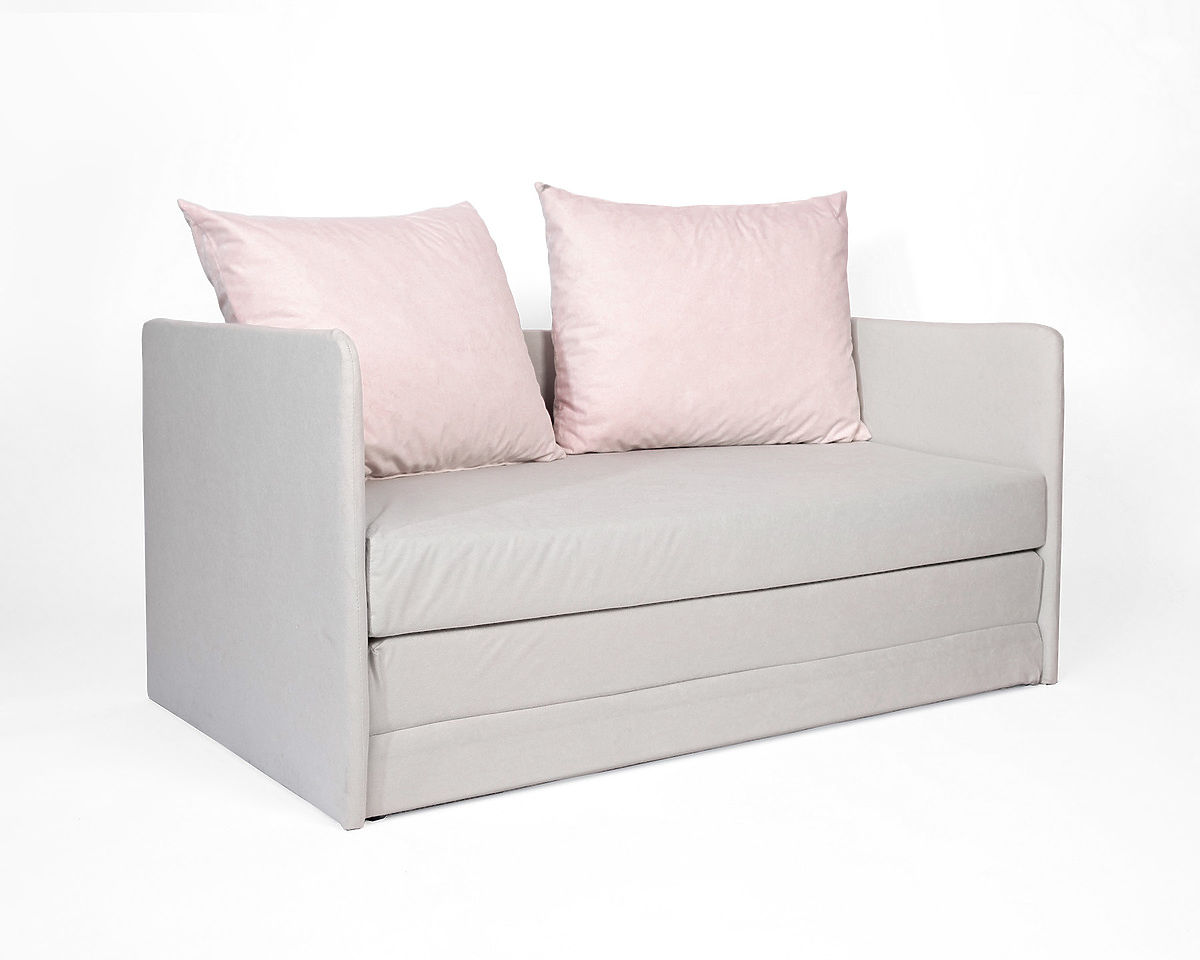 The beautiful and very practical light grey Jack sofa with powder pink cushions will fit perfectly into any girl's room.