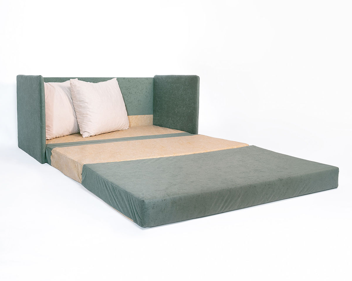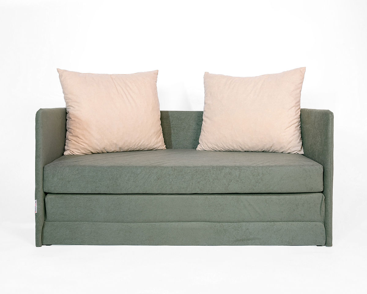 Convertible sofa Jack in dark green with beige cushions for kids' rooms. .. more