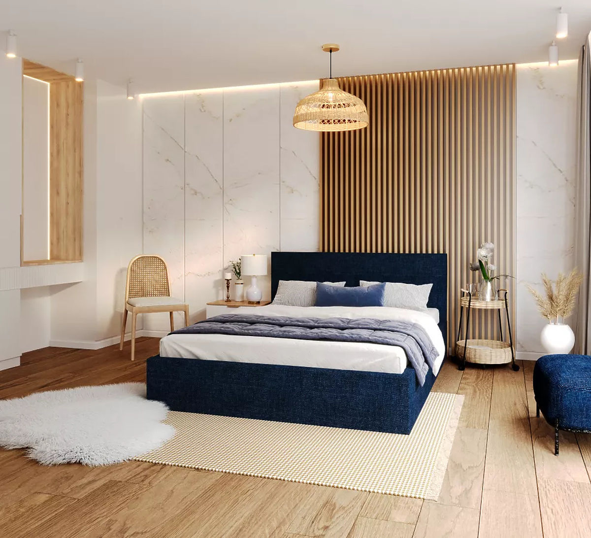 The elegant TULSA upholstered bed in dark blue and measuring 120 x 200 cm is a beautiful piece of furniture that not only offers sleeping comfort, but also adds flair to the bedroom thanks to its timeless design and attractive finish. Dark blue is a color associated with calmness, confidence and elegance. This color can create a calming atmosphere and give the bedroom a sense of well-being. The upholstered headboard adds softness and elegance to the space, while the size provides enough space for two people to sleep comfortably.