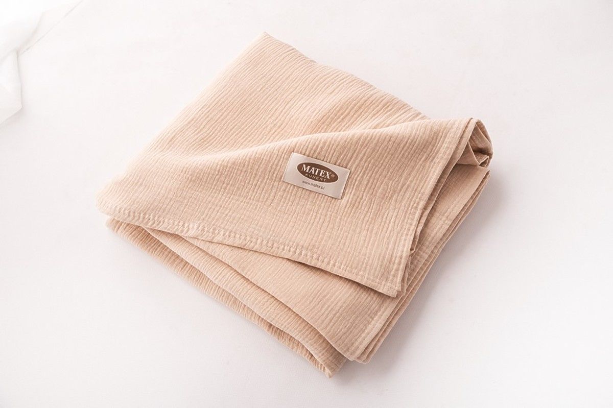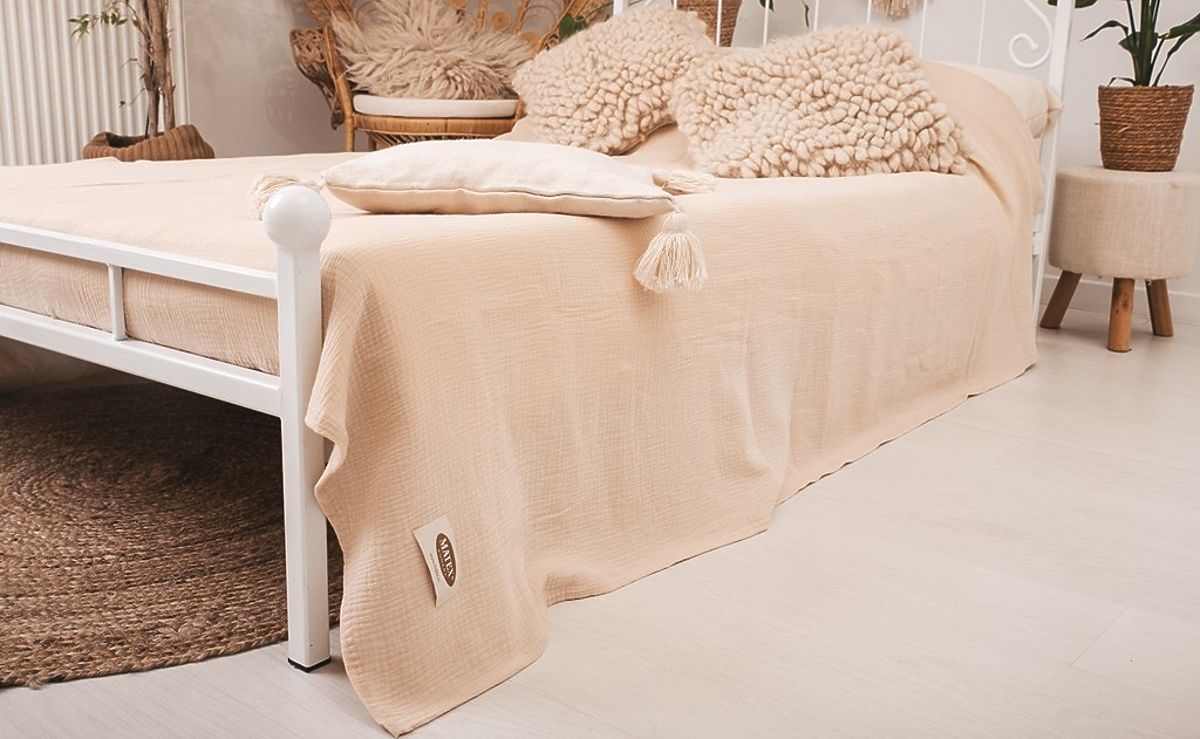 Muslin bedspread 240x210 cm. It is light, pleasant and soft to the touch. It has excellent breathability and the ability to regulate temperature. It does not require ironing, always has an aesthetic effect and gives the bedroom a cozy look.