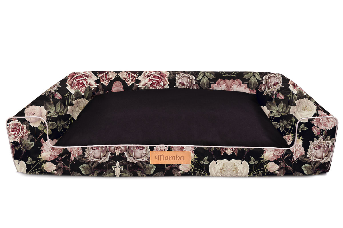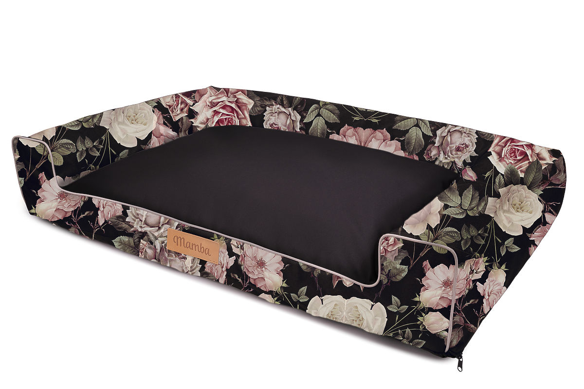 Having a comfortable place for rest or sweet lounging is everyone's wish. Treat your four-legged friend to a soft and very spacious bed , which is characterized by a beautiful motif of roses on a black background and high-quality material with waterproof properties.