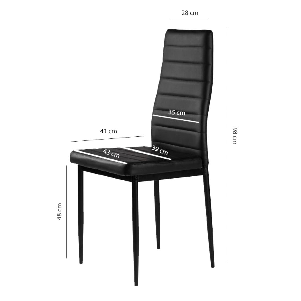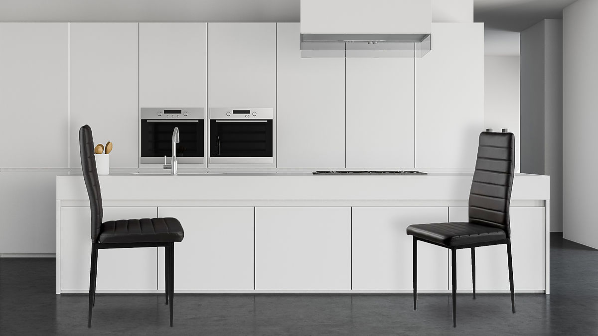 The chairs will perfectly match your family table in the dining room and kitchen. The black upholstery made of soft eco-leather and the simple black legs create an interesting combination that will make the chairs look great and fit into any type of interior, giving it a unique character.