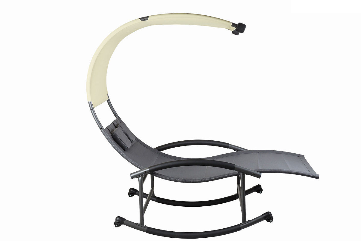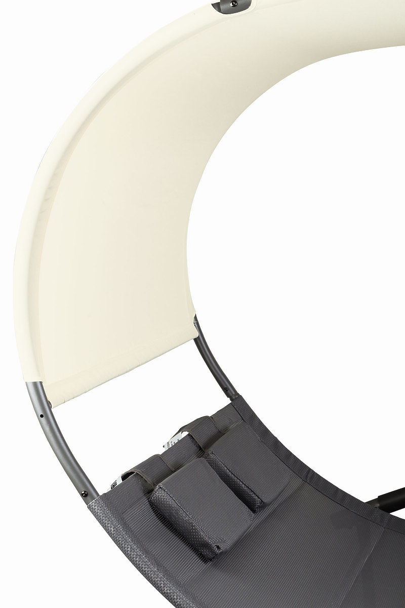 The lounger owes its stability and safety to the properly profiled frame and runners, which allow gentle rocking. The large canopy provides pleasant shade during hot days and protects us from UV rays, while the gentle rocking further enhances the time spent outdoors with our loved ones. The high-quality material from which the lounger’s lying surface is made "breathes" and allows water to pass through, making it weather-resistant.