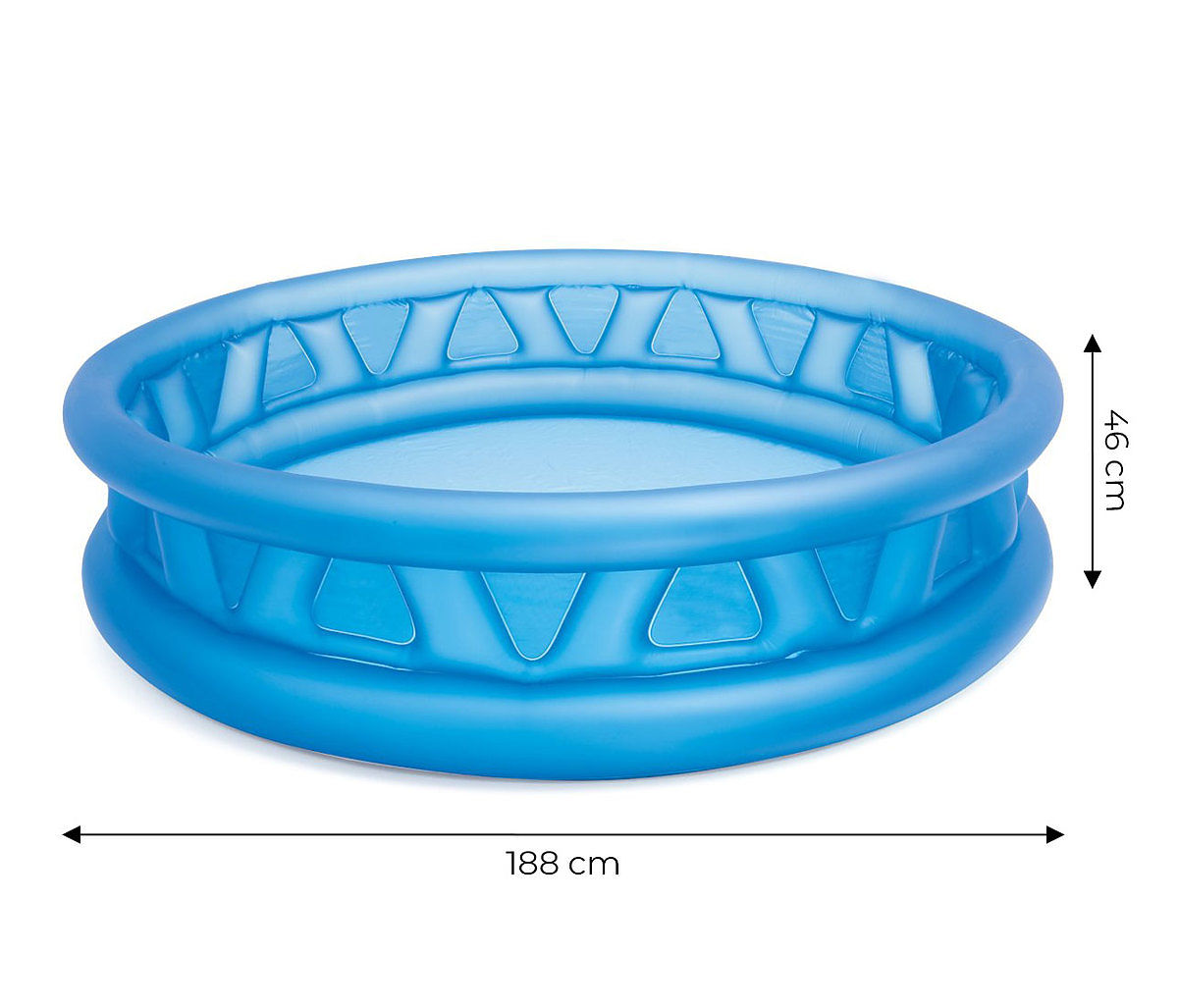 The pool with a diameter of 188 cm is a place for fun for several children. The depth of 46 cm is suitable for small children and ensures safe play. The pool resembles a bottle cap in appearance; this form has allowed for three independent air chambers, making the edges sufficiently reinforced. The pool is easy to clean and, with proper storage, will last many seasons. Thanks to it, your children definitely won't get bored.