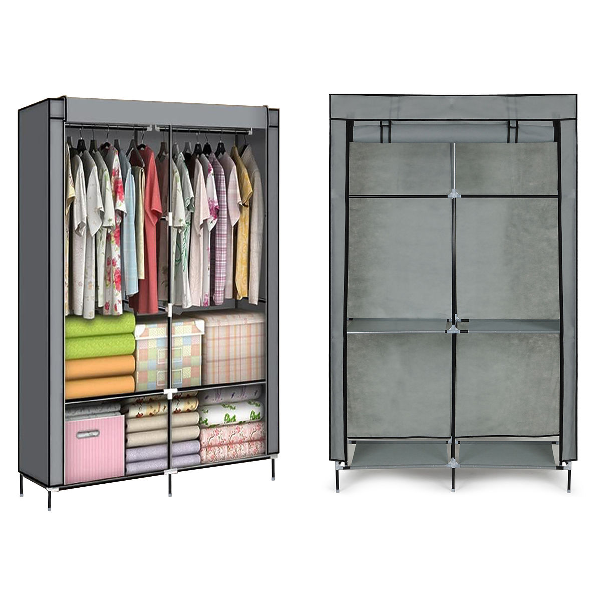 Convenient textile wardrobe with shelves and hanging rods for ample storage. .. more