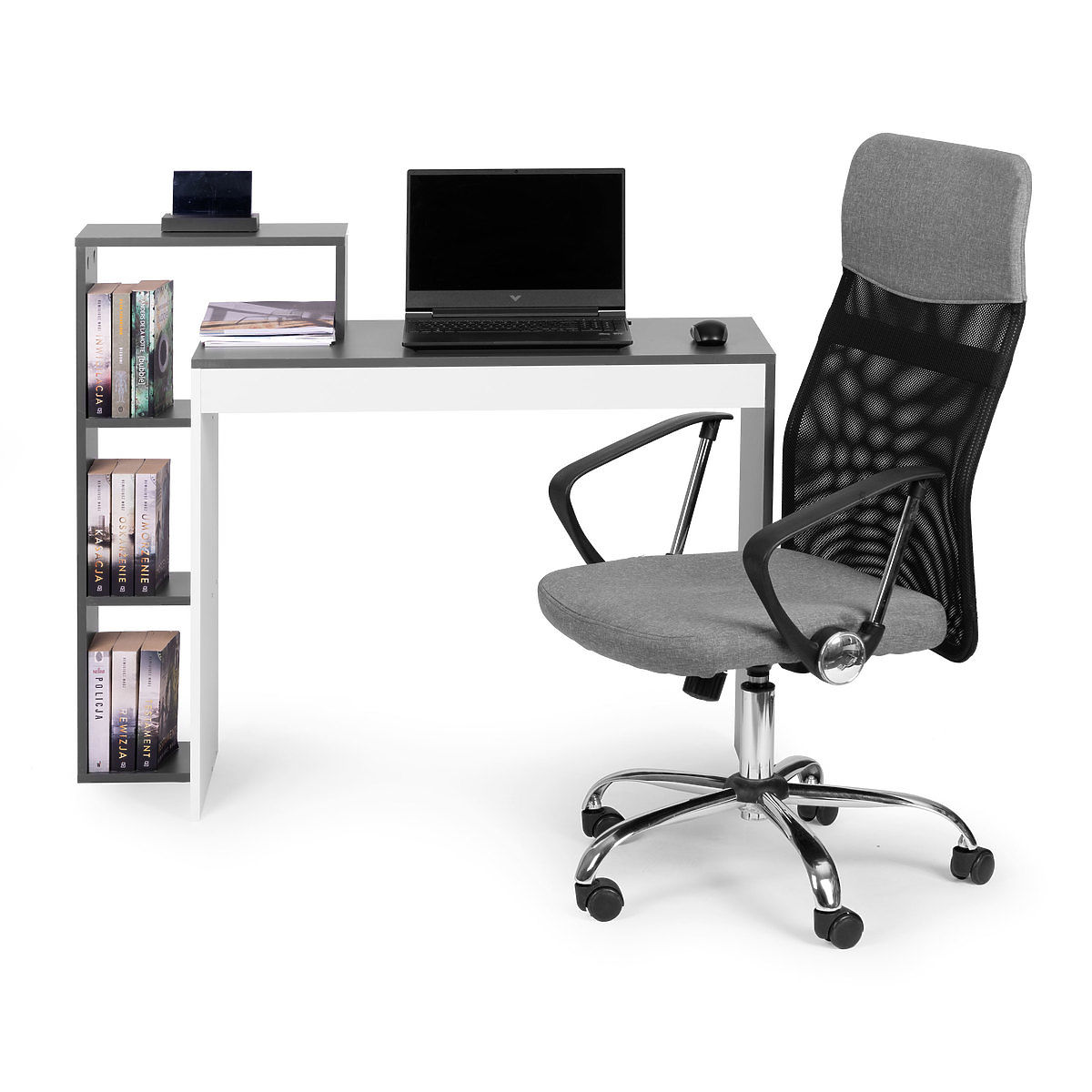 Lukahome.co.uk » Tables and coffee tables / Desks / White-Grey Office Computer Desk + Shelf with 4 Shelves