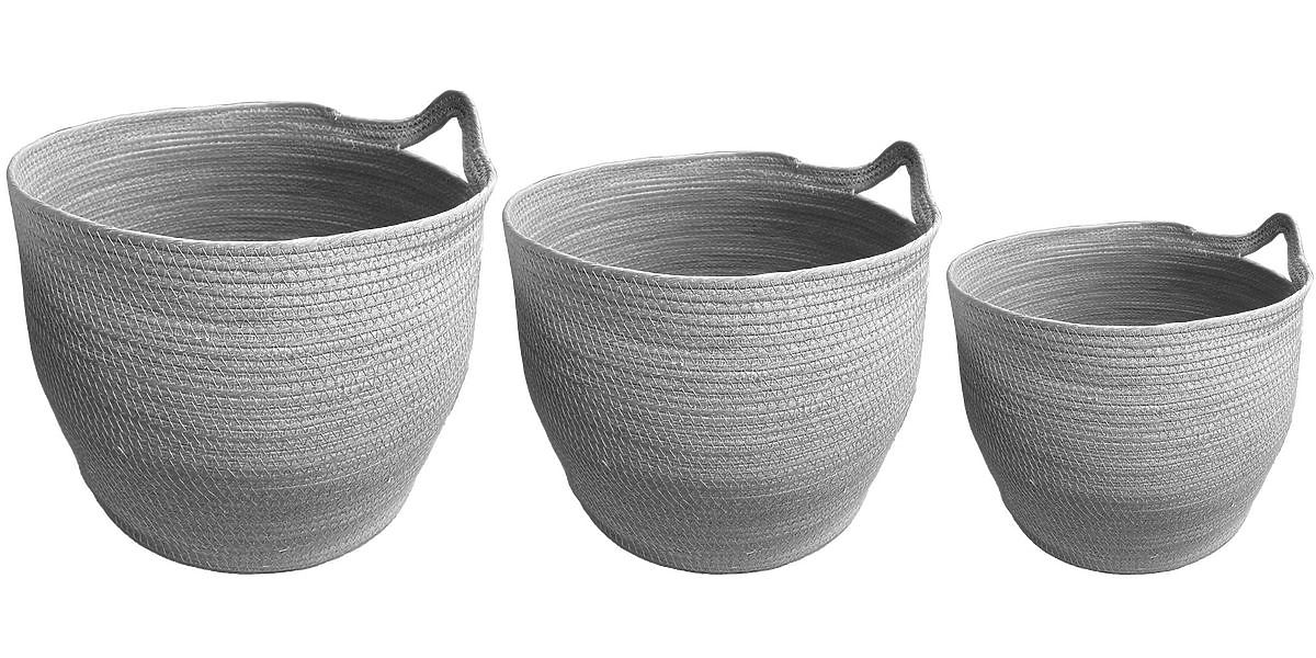 Hand-woven grey BOHO baskets for stylish storage. .. more