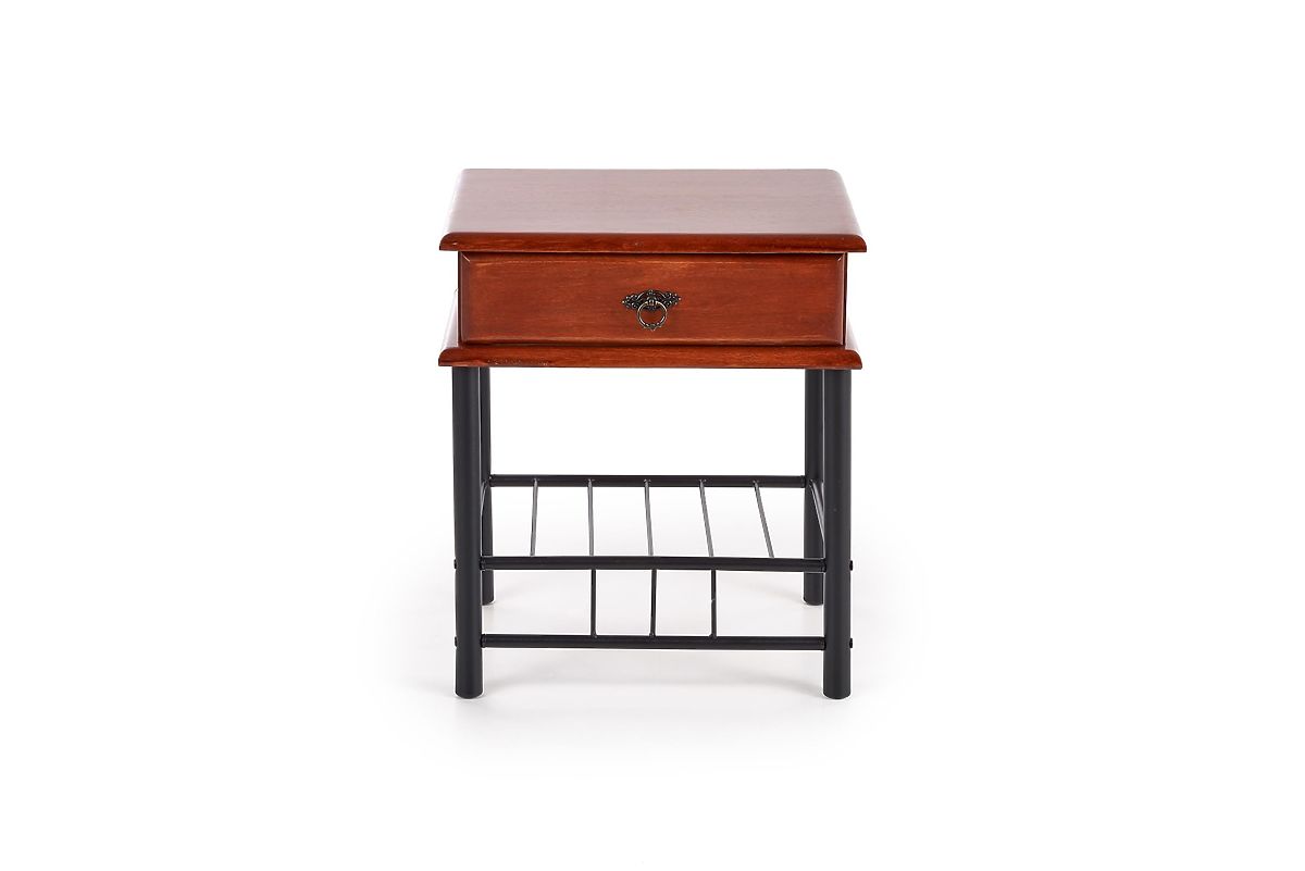 Made from premium solid wood and complemented by sturdy steel elements, this nightstand is not only visually impressive but also highly durable. The antique cherry finish highlights the beautiful wood texture, while the black painted steel legs and handles give the nightstand an industrial look.