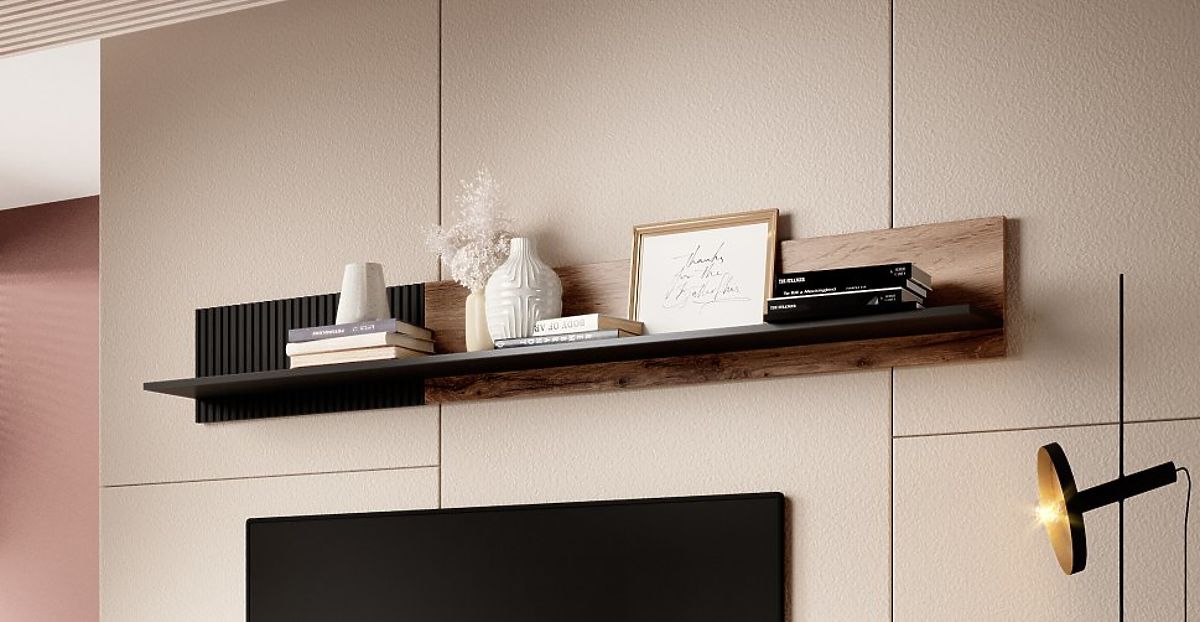 Material: The shelf is made of MDF with a surface finish and furniture board with a surface finish, ensuring its durability and aesthetic appearance. The mounting elements are made of polypropylene, guaranteeing a firm and secure installation.