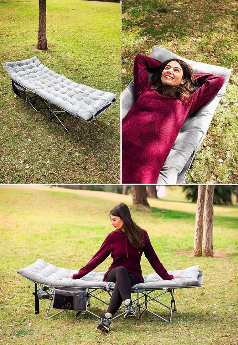 Grey garden lounger cushion with waterproof material and decorative stitching. .. more