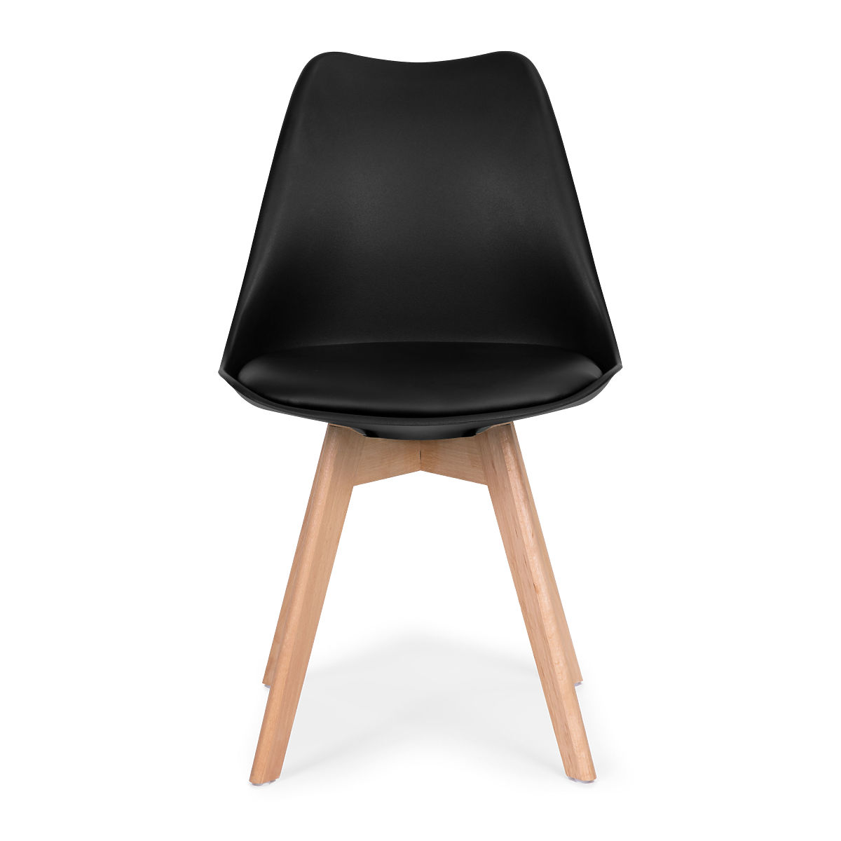 Set of 4 black chairs with eco-leather cushion and beech wood legs. .. more