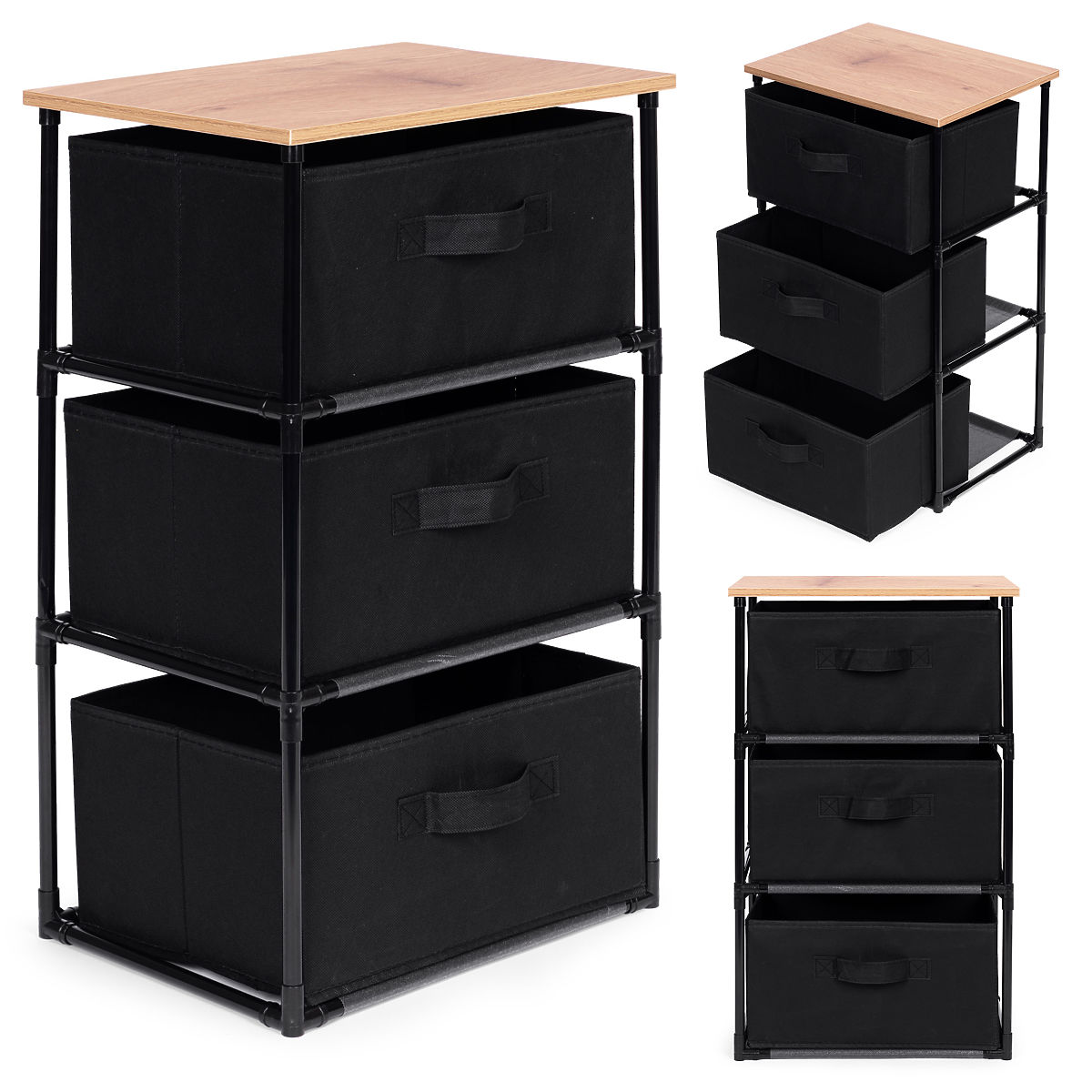 THOUGHTFUL SOLUTIONSThe cabinet features 3 removable baskets made from durable material resistant to damage, allowing you to store various items, from clothing and accessories to books or toys. Convenient handles make it easy to slide out the baskets, enhancing user comfort.