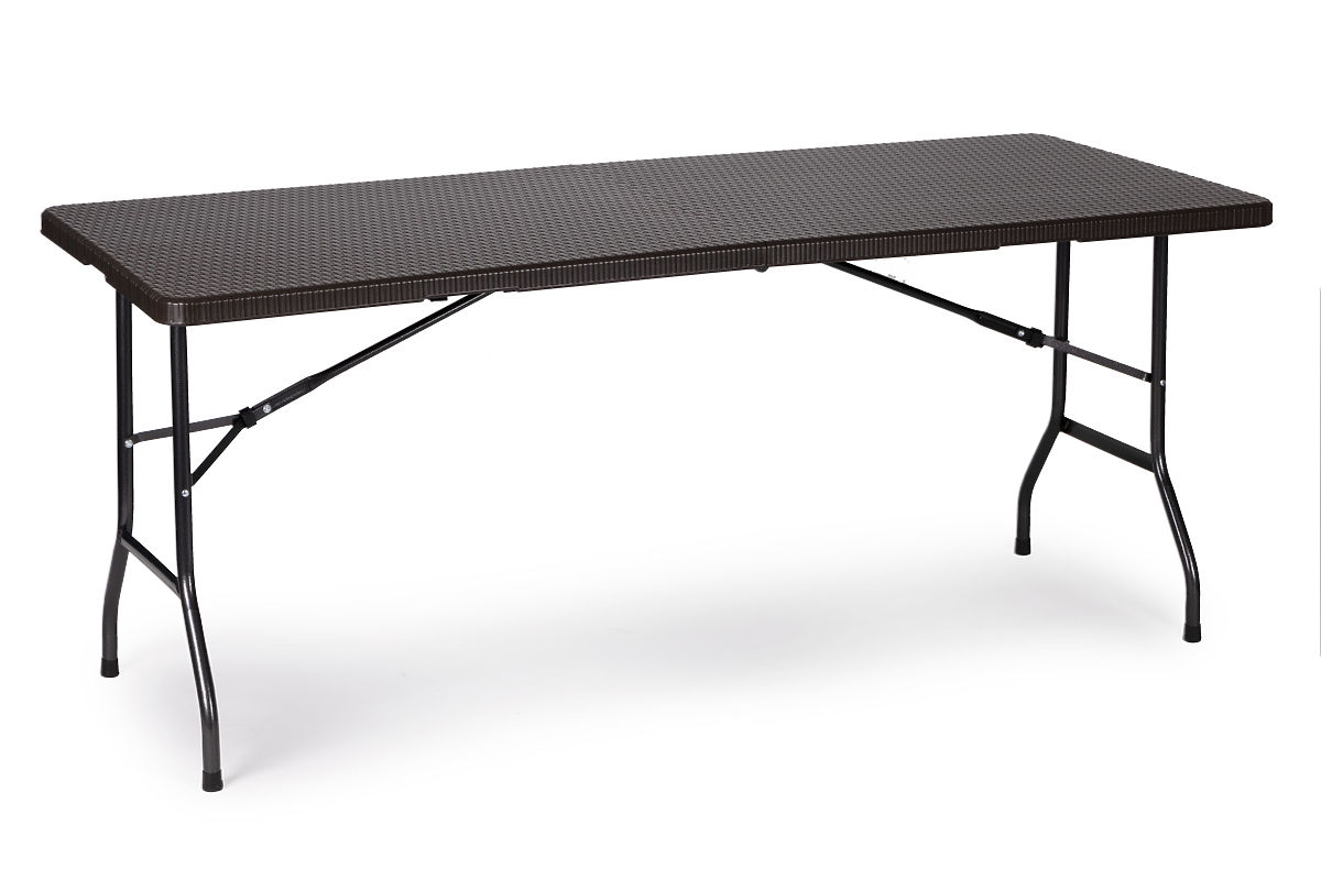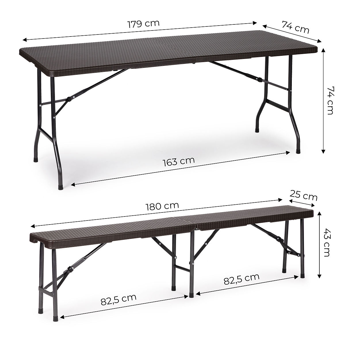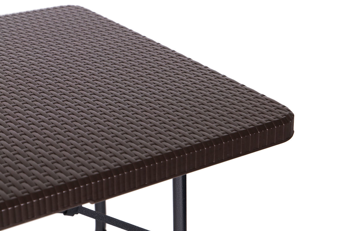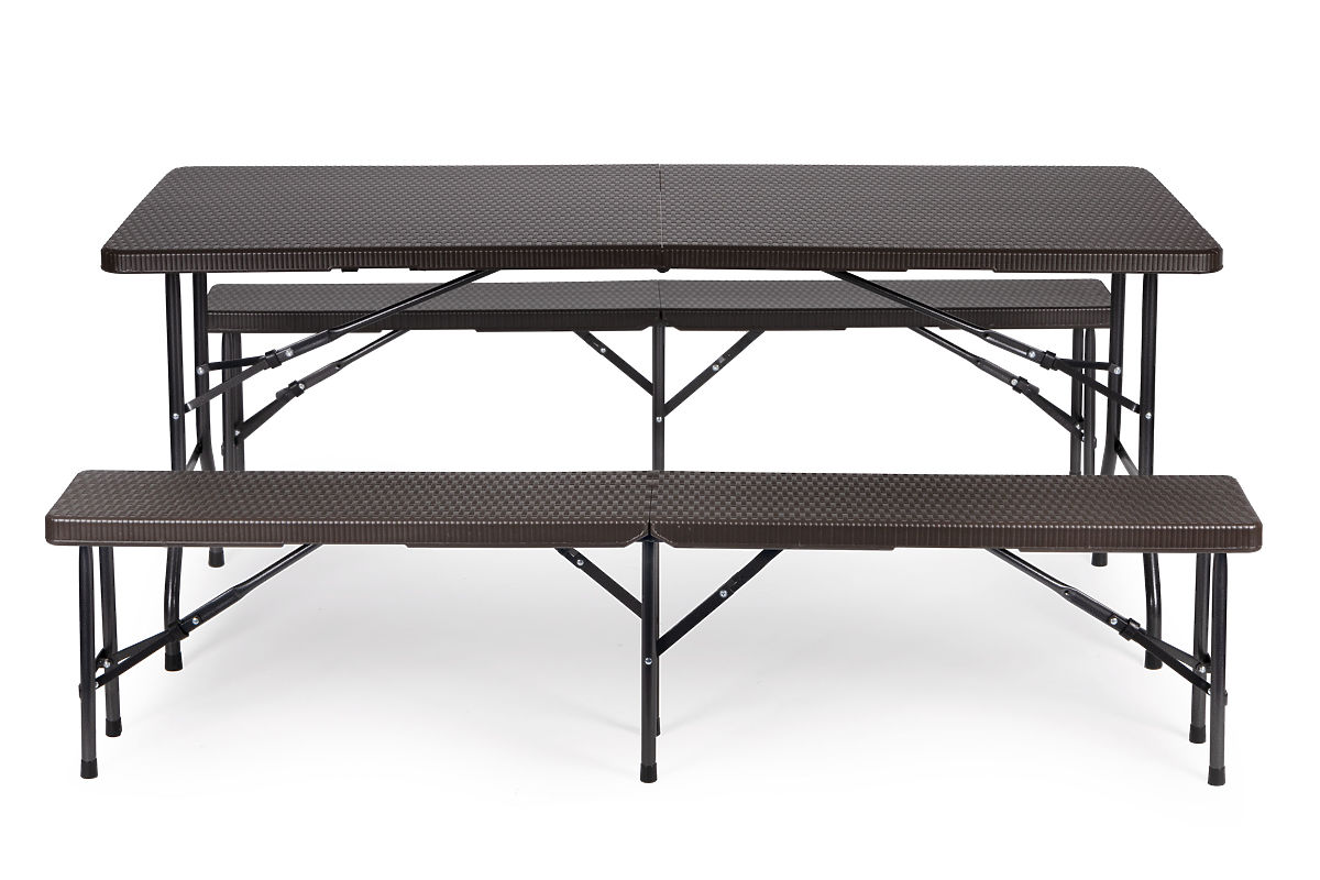 Rattan-patterned catering set for 8 people with foldable table and benches. .. more