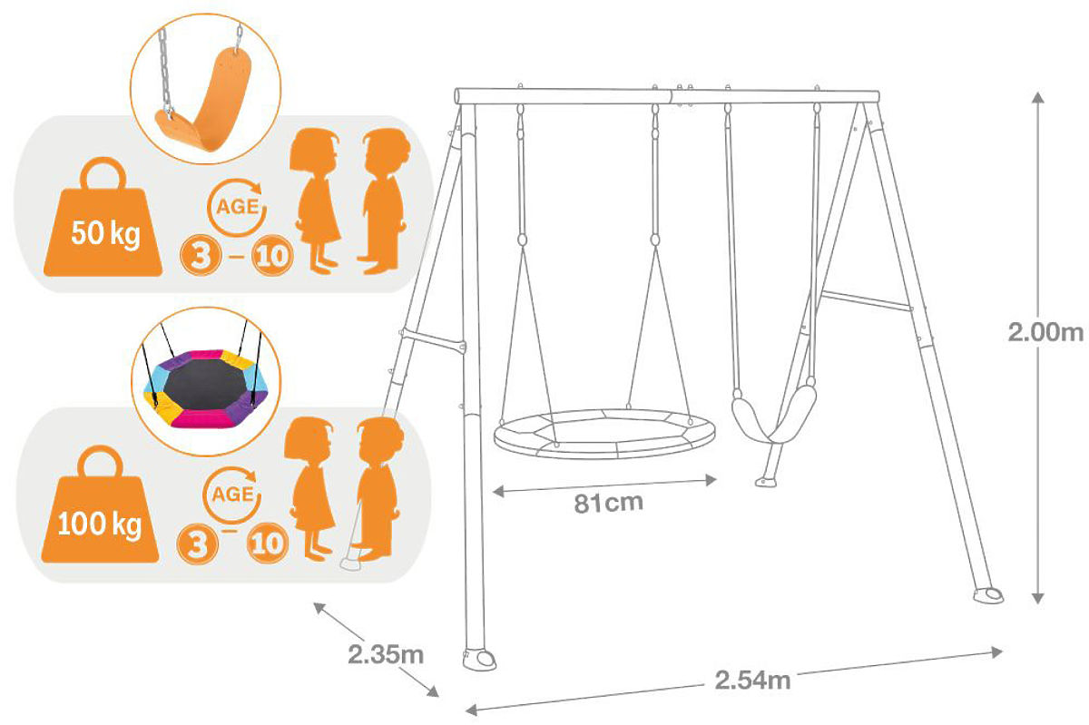 Are you looking for a way to create a safe children's playground in the garden? The double garden swing INTEX 44126 is the perfect solution for families with children. The model combines a classic children's swing with an elastic seat and a bird's nest swing, ensuring variety and joy in play. Thanks to its colorful design and ergonomics, it fits perfectly into any garden and is designed for up to three children at once. Choose the garden swing for children INTEX and turn your garden into a true paradise for play!