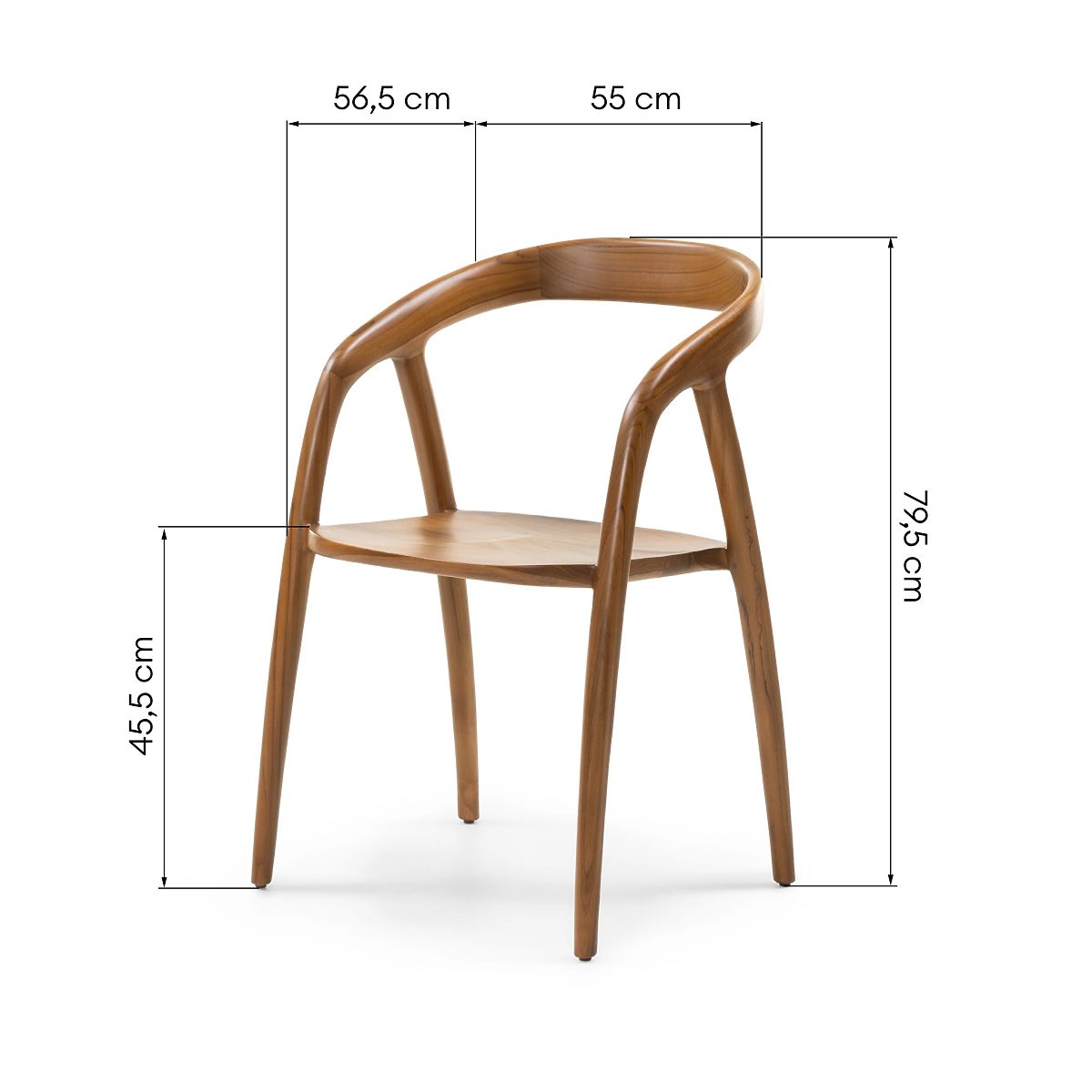 Rounded teak wood chair with natural tones and sturdy construction. .. more