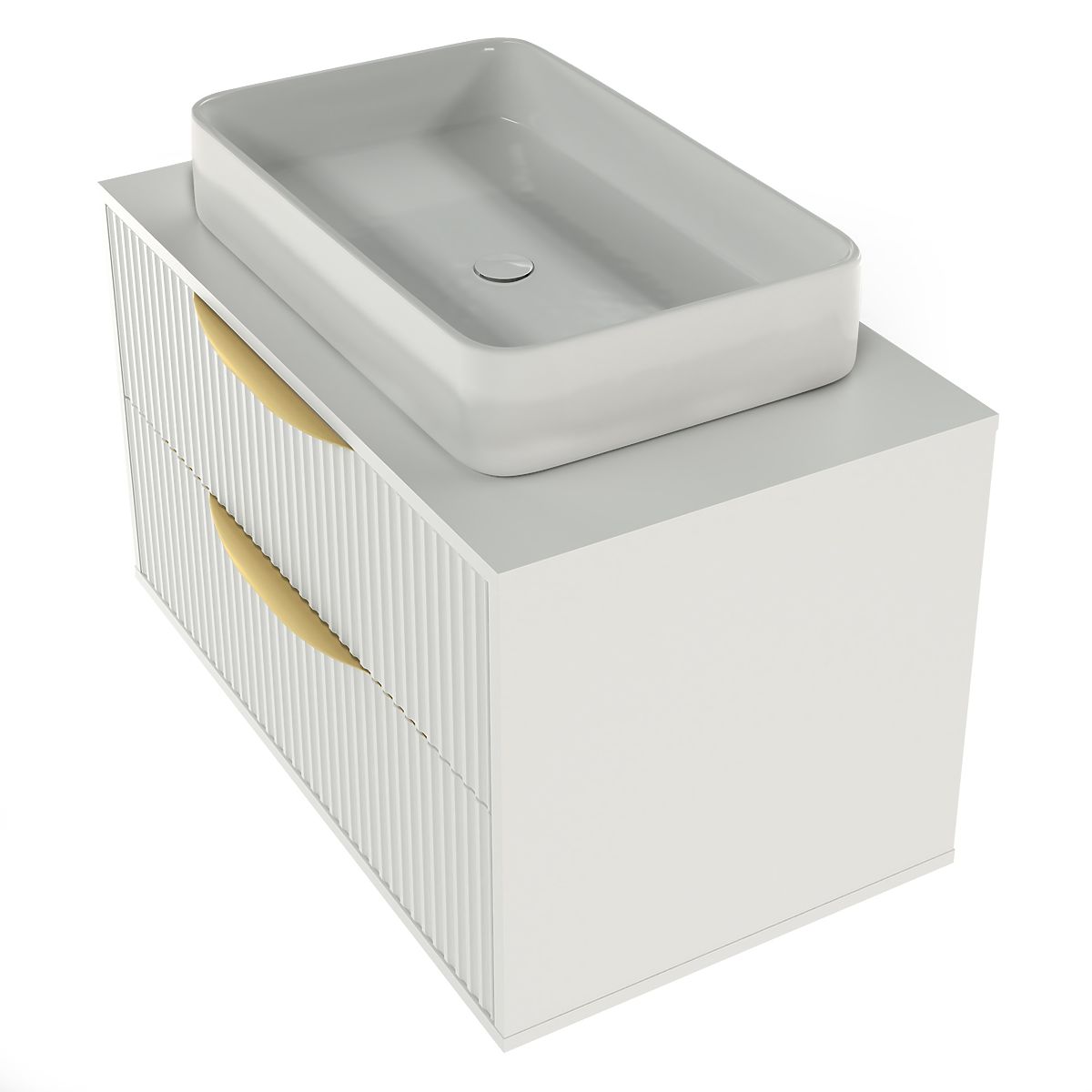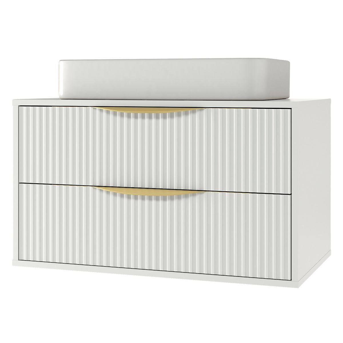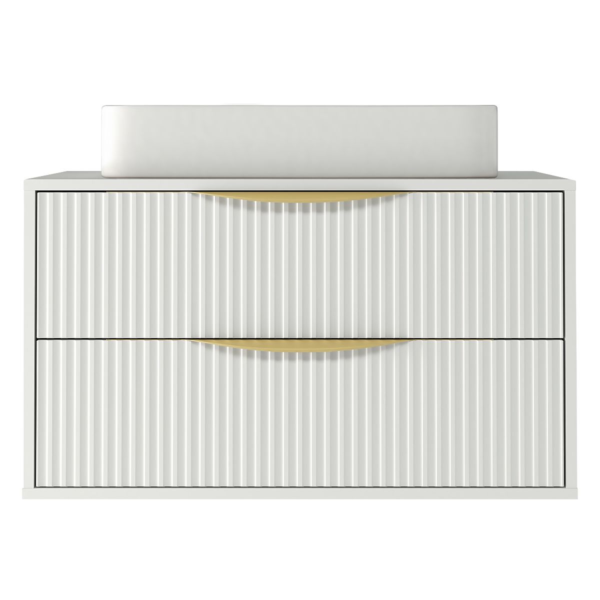 Lukahome.co.uk » Bathroom and toilet / Bathroom cabinets / Avila 2.0 Cabinet for Countertop Sink, 80 cm, Grooved, Gold Handles, White