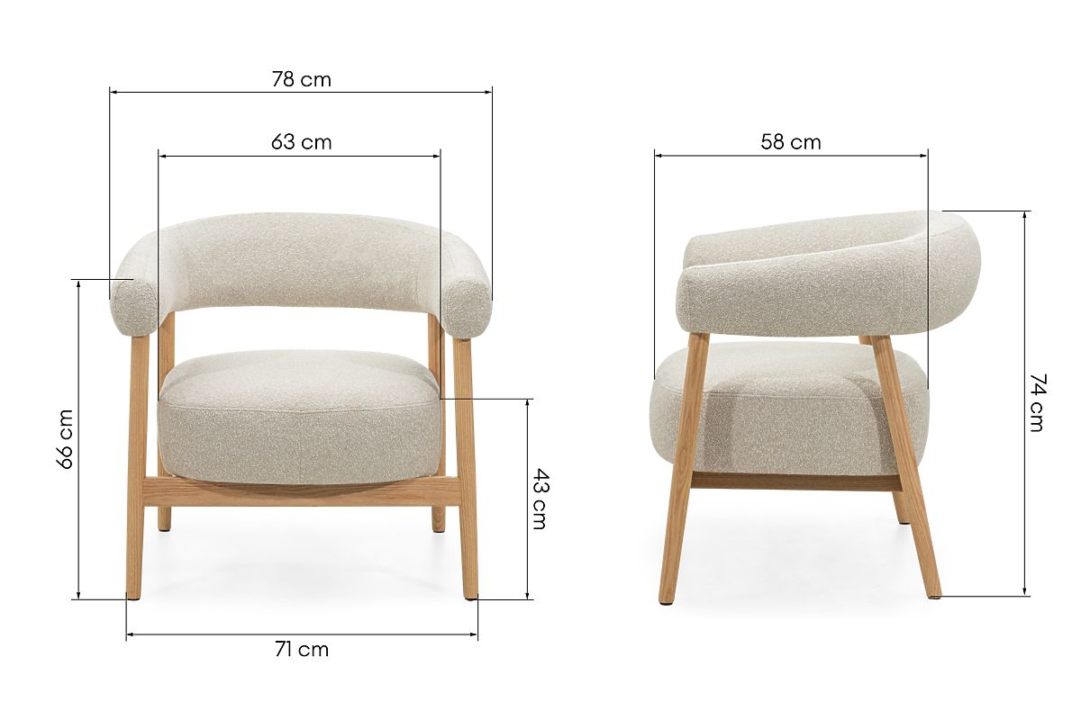 Lukahome.co.uk » Křesla a sezení / Křesla / Upholstered Chair/Armchair Montepulciano, Light Beige/Oak Wood, Rounded
