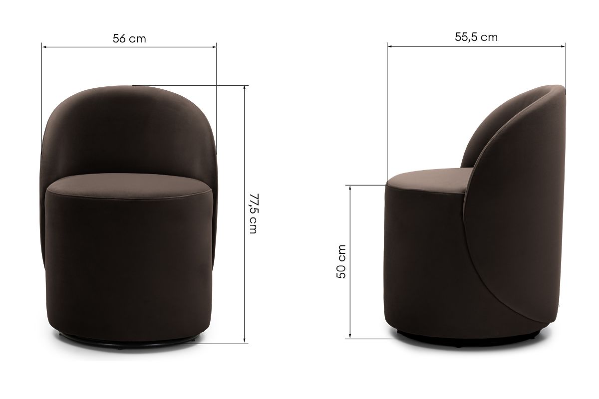 Lukahome.co.uk » Armchairs and seating / Armchairs / Enzo Swivel Chair, Rounded Shapes, Chocolate/Espresso, Velvet