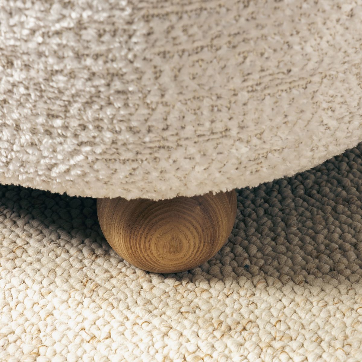 Monroe chair with beige fabric and unique ball-shaped ash wood legs. .. more