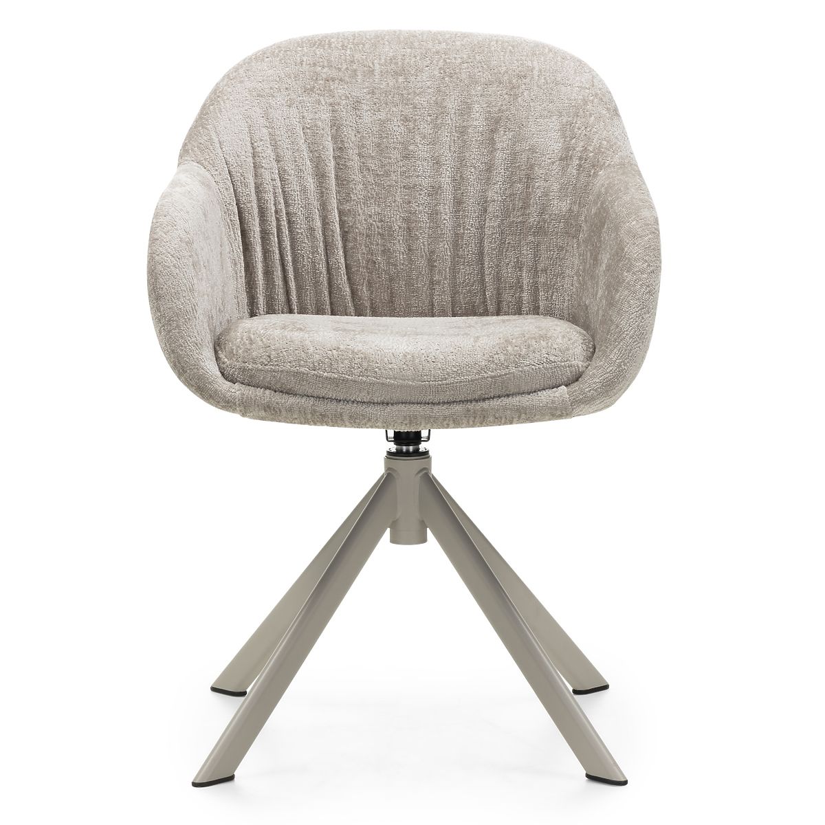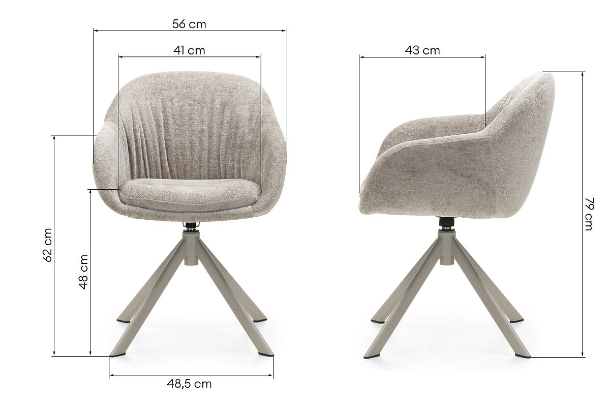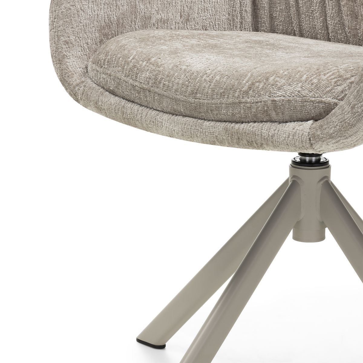Immerse yourself in the comfort that surrounds you from the first contact. The KAIRO swivel chair is not just a stylish piece of furniture, but above all an invitation to daily relaxation. The soft, pleasant-to-touch fabric in a warm beige shade adds coziness and elegance to the interior, while the gentle pleating on the backrest subtly accentuates its modern character. The 360° swivel seat ensures freedom of movement. Perfect for both a home office and a relaxation space. Comfortable armrests provide a sense of stability and relaxation whenever you need it. The stable construction based on metal legs in a beige-gray shade harmoniously complements the whole, creating an exceptional piece of furniture with a timeless design. KAIRO is a combination of aesthetics and functionality that will add class to your interior and give you a moment just for yourself.