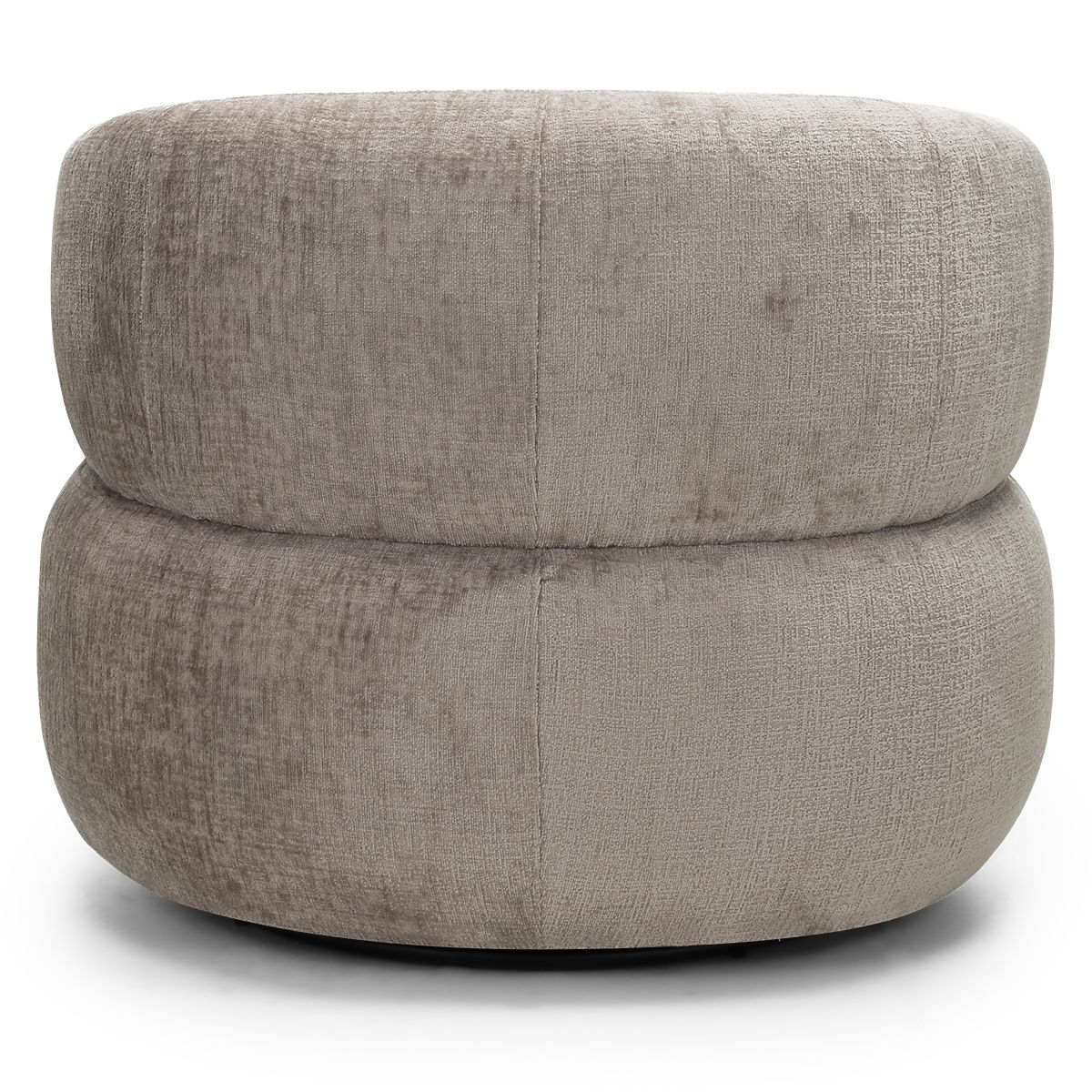 Beige Ambi swivel chair with rounded shapes for modern comfort. .. more