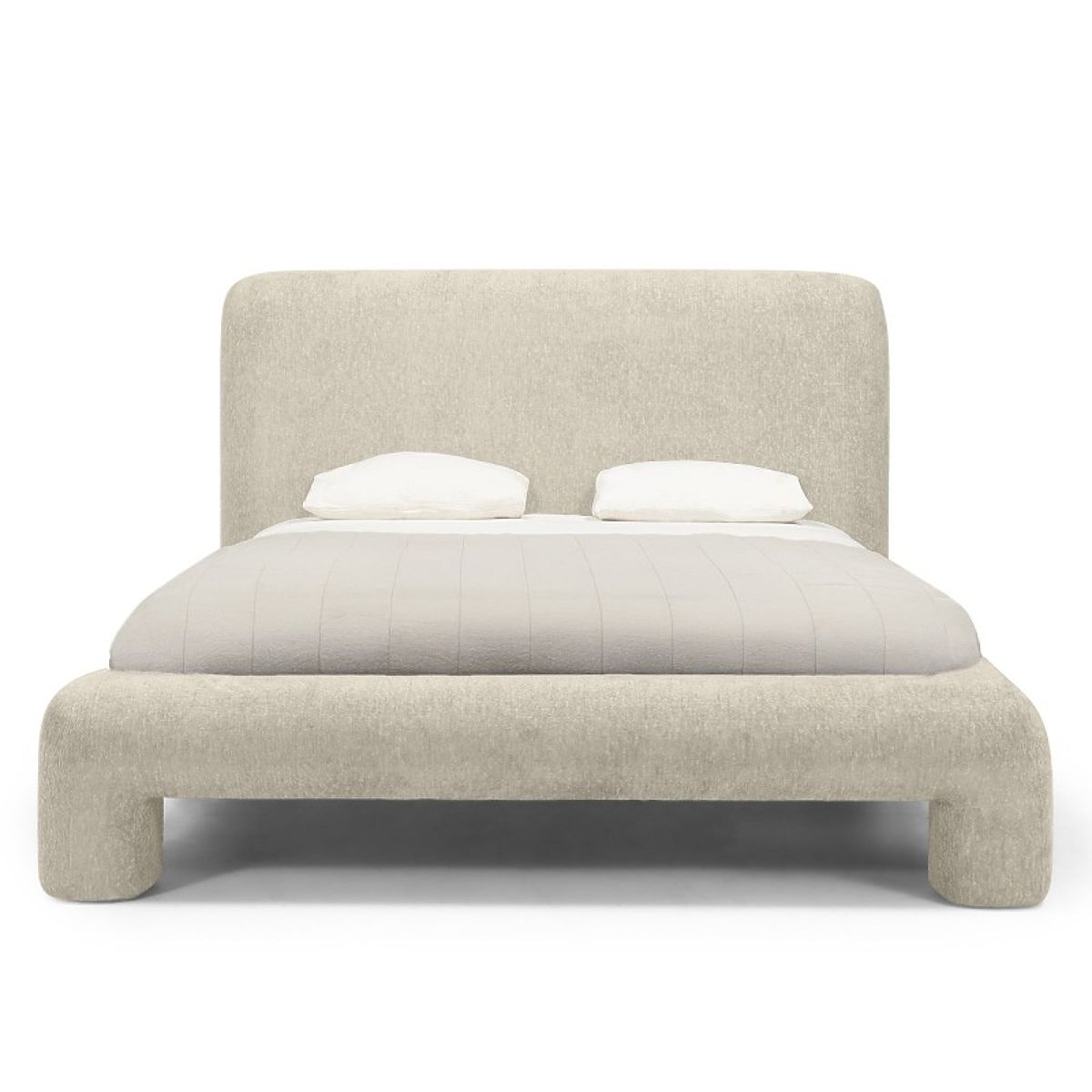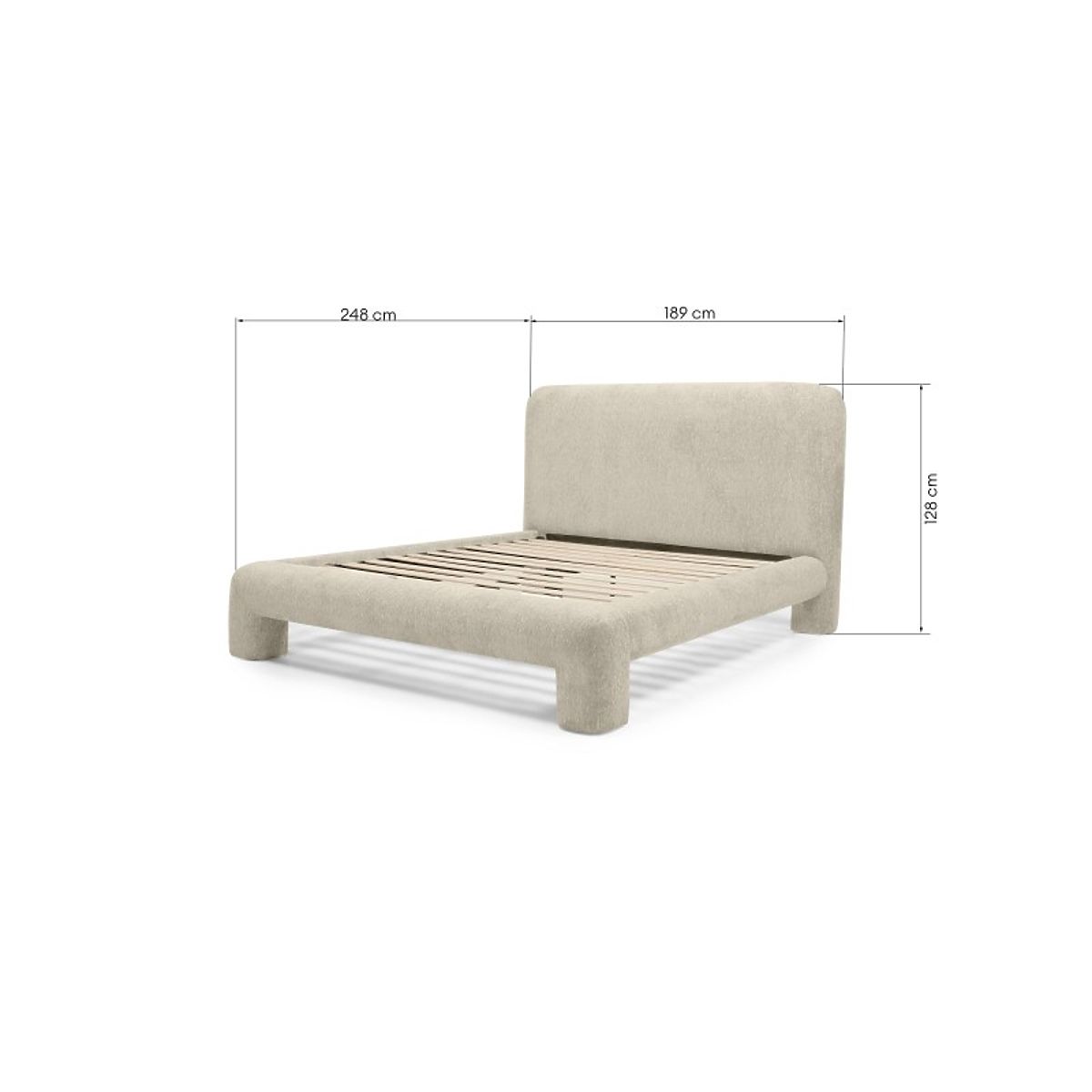 Light grey upholstered bed Rolly with rounded design and slatted frame. .. more
