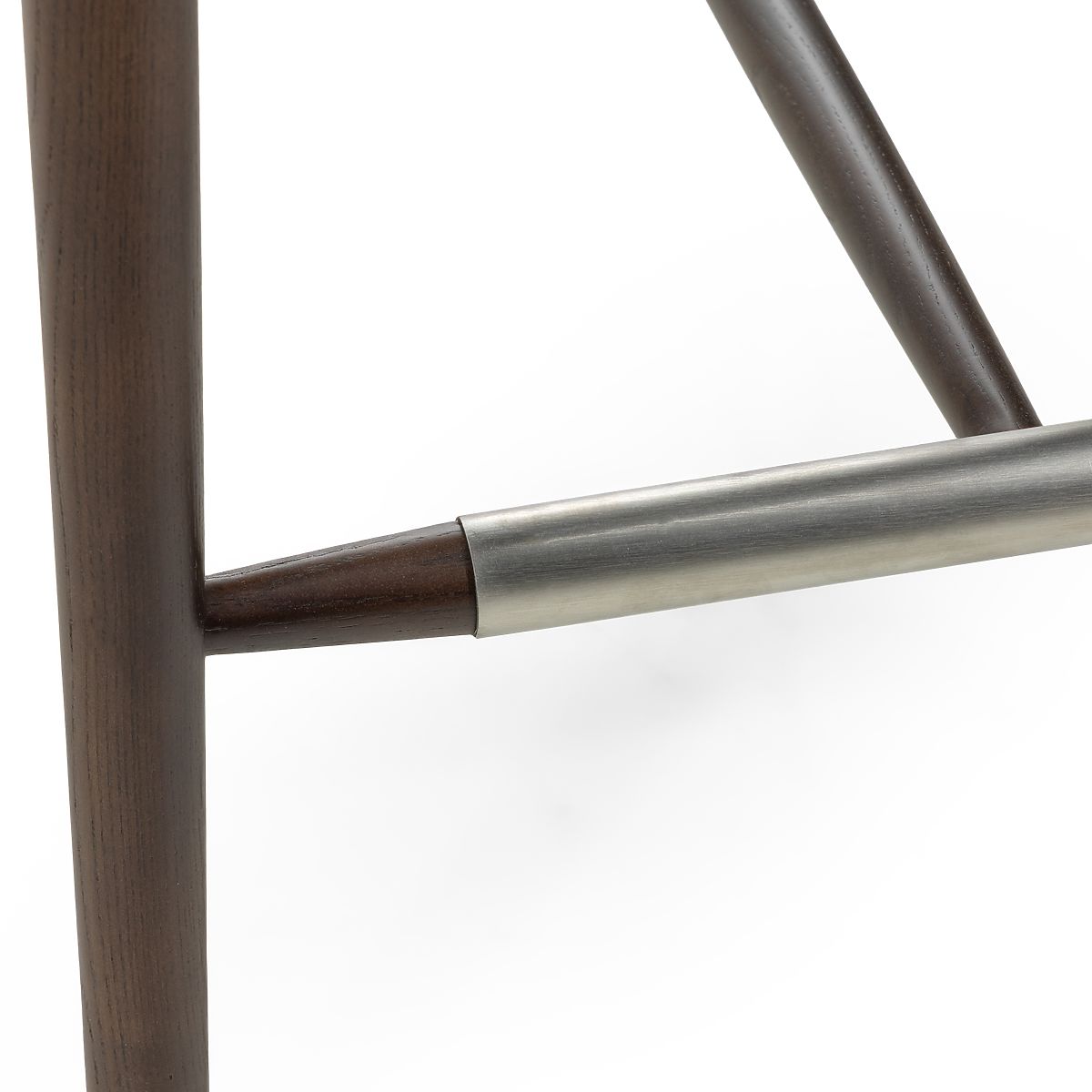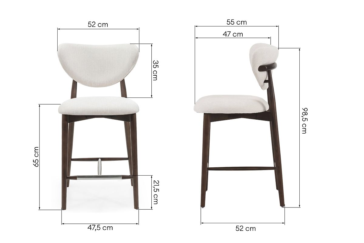 Elegant bar stool with beige upholstery and walnut-stained legs. .. more