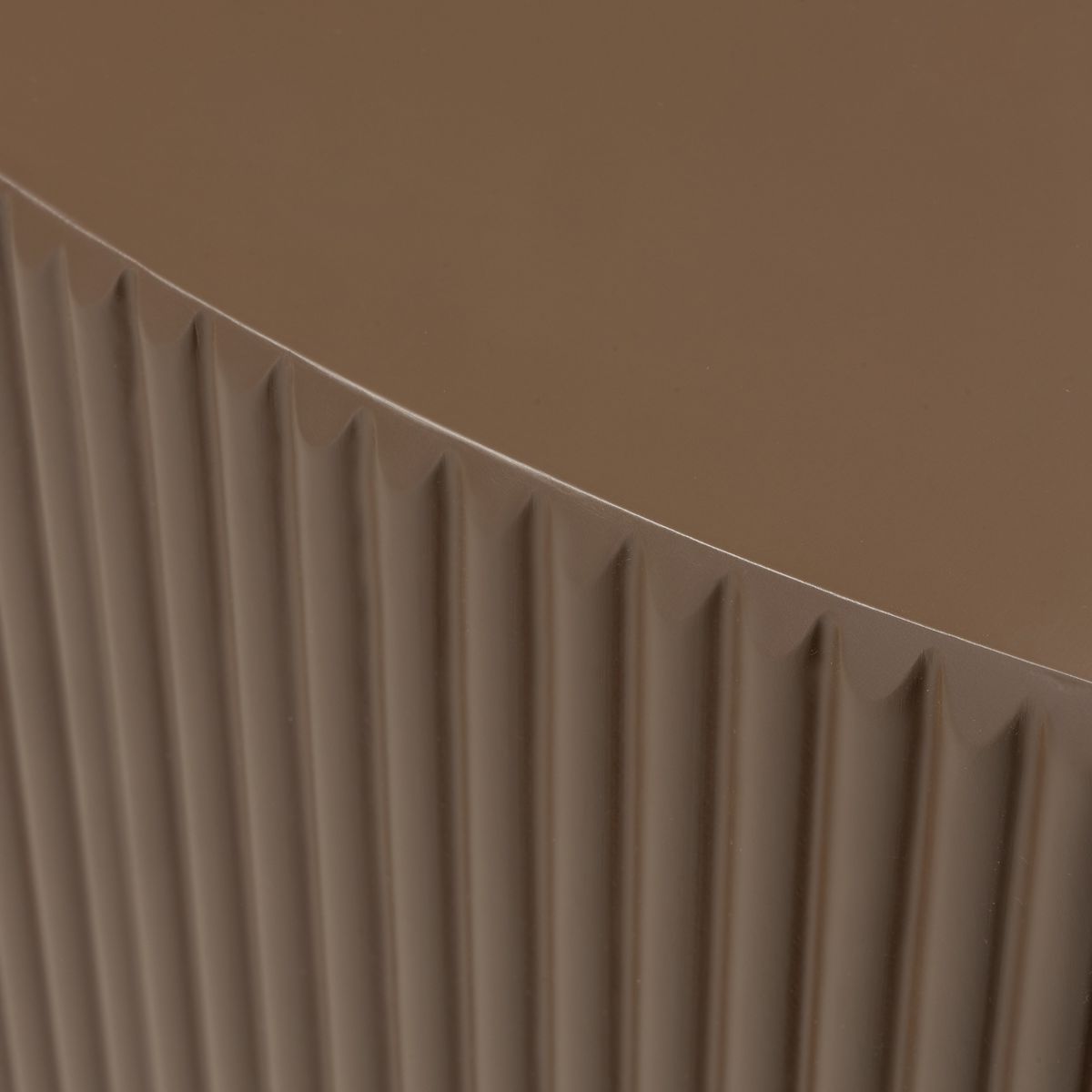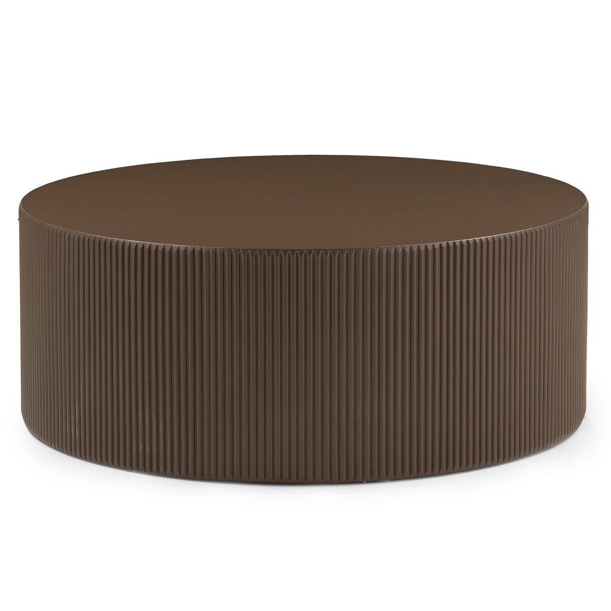 A 90 cm mocha coffee table with decorative grooving. .. more
