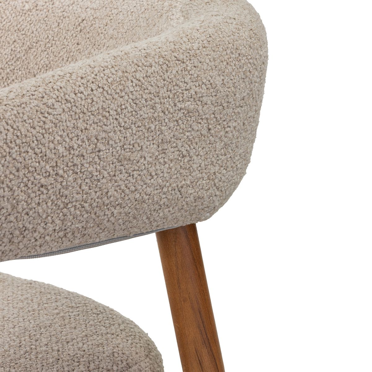 Light brown upholstered chair with oak wood legs and rounded backrest. .. more