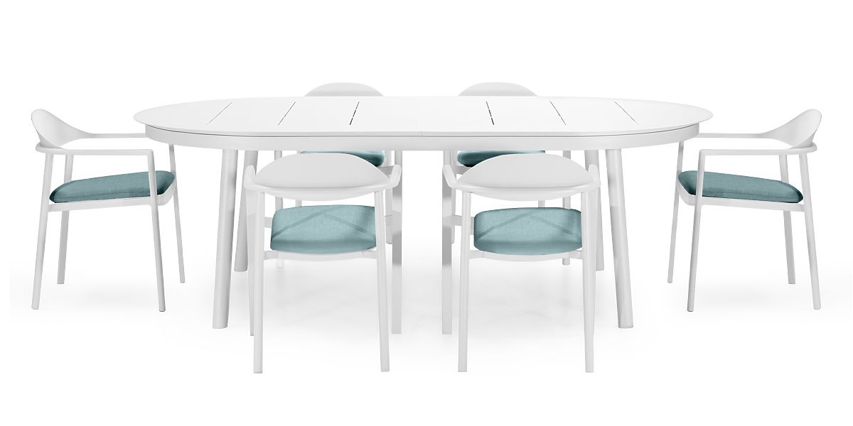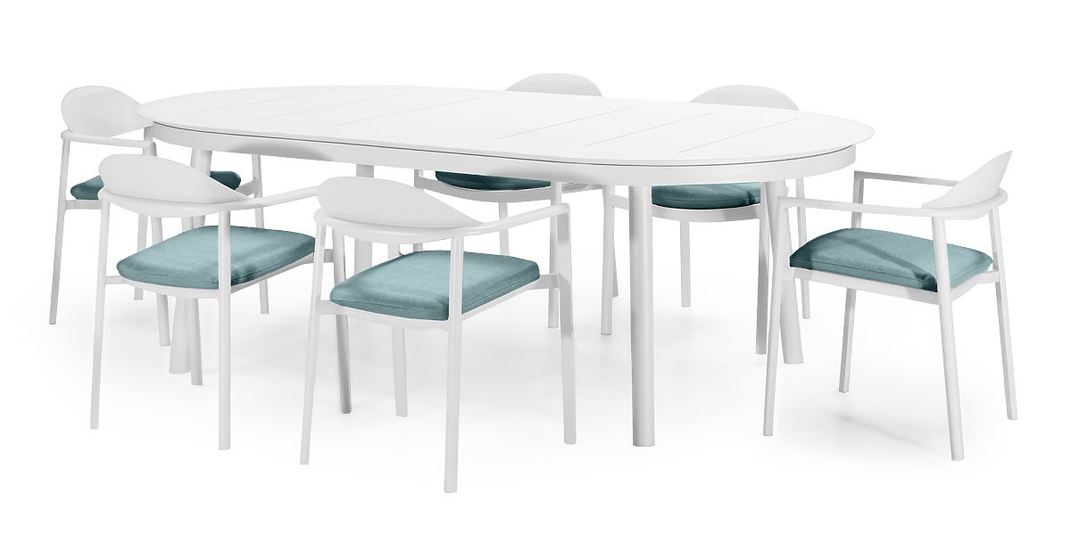 Lukahome.co.uk » Zahrada / Zahradní nábytek / Marinelli Garden Set, Extendable Table 230-300 cm + 6 Chairs, Aluminum, White