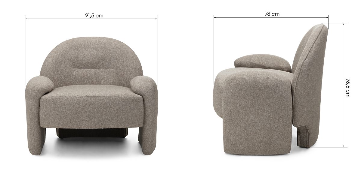 The Sheli armchair blends luxury, style, and comfort with its rounded shapes. .. more