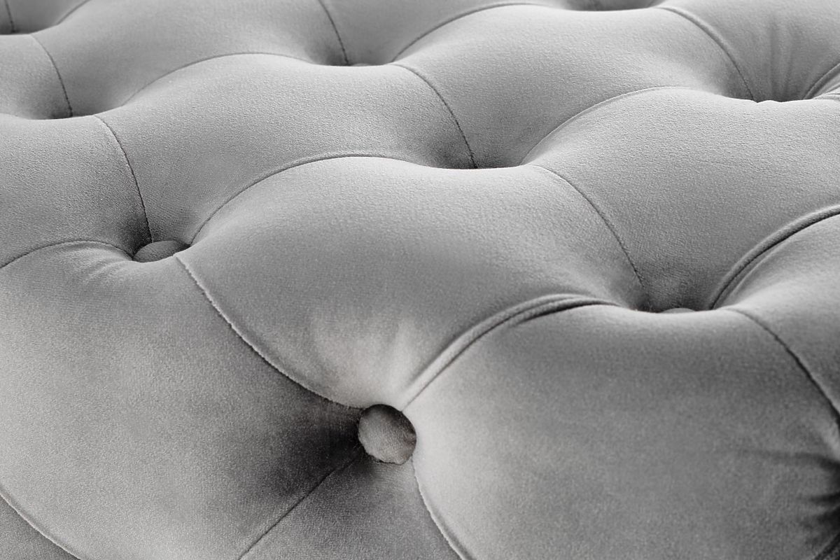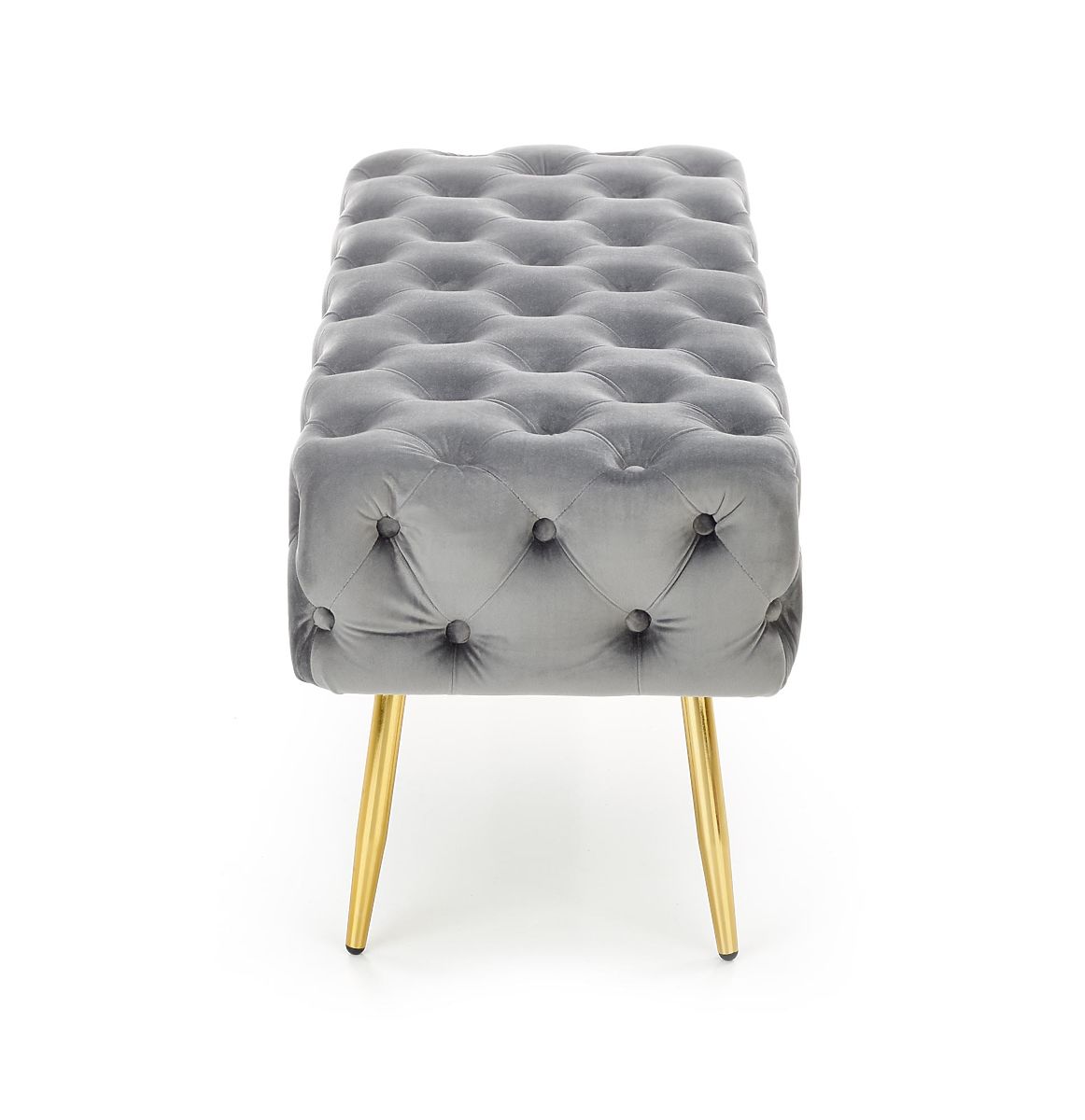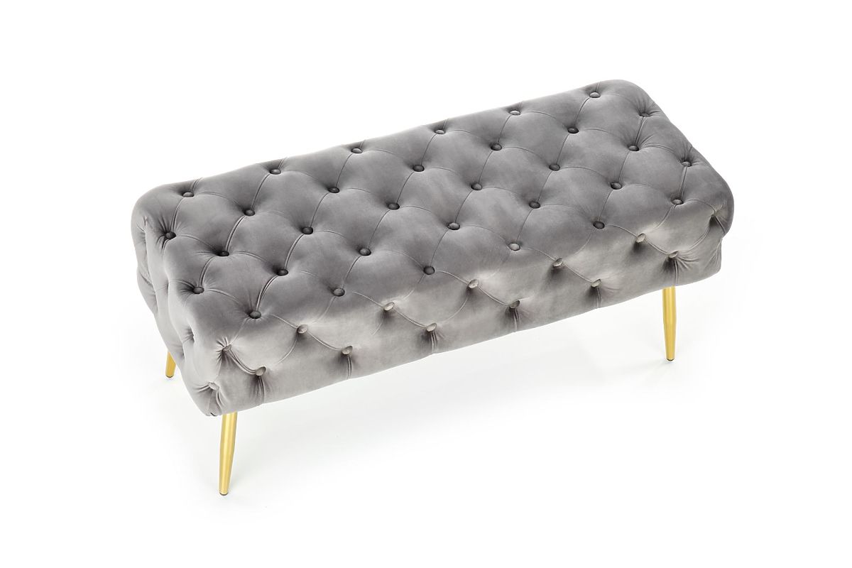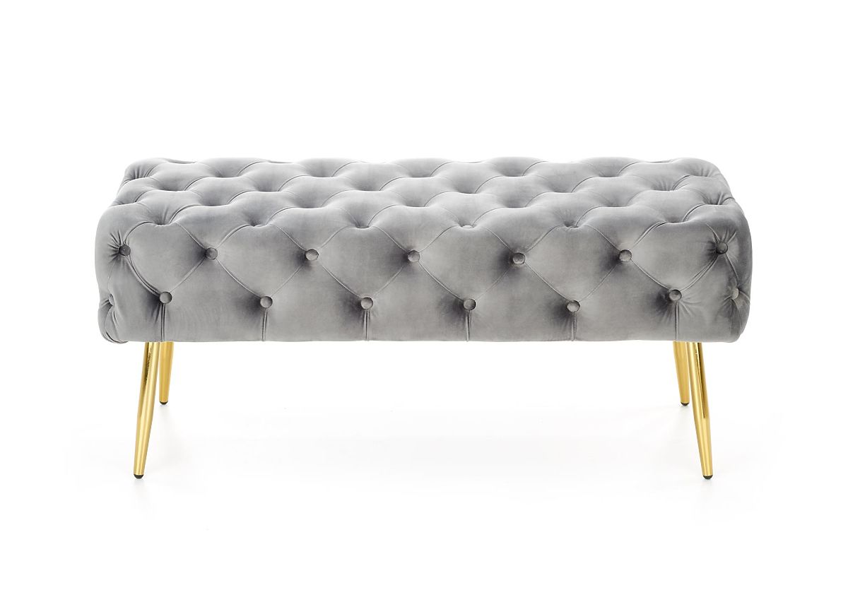 Grey velvet bench with gold legs, 100 cm wide. .. more