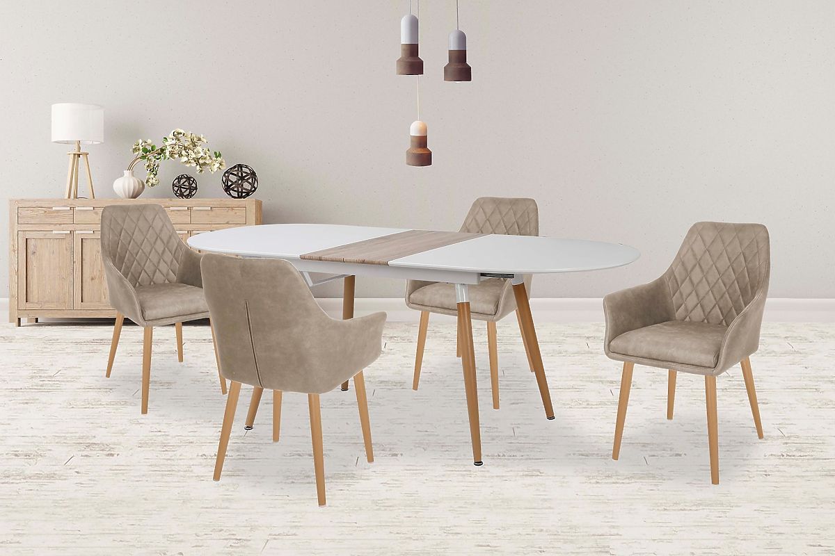 Lukahome.co.uk » Dining room and kitchen / Dining tables / Extendable Table CALIBER White / San Remo Oak (1p=1pc)