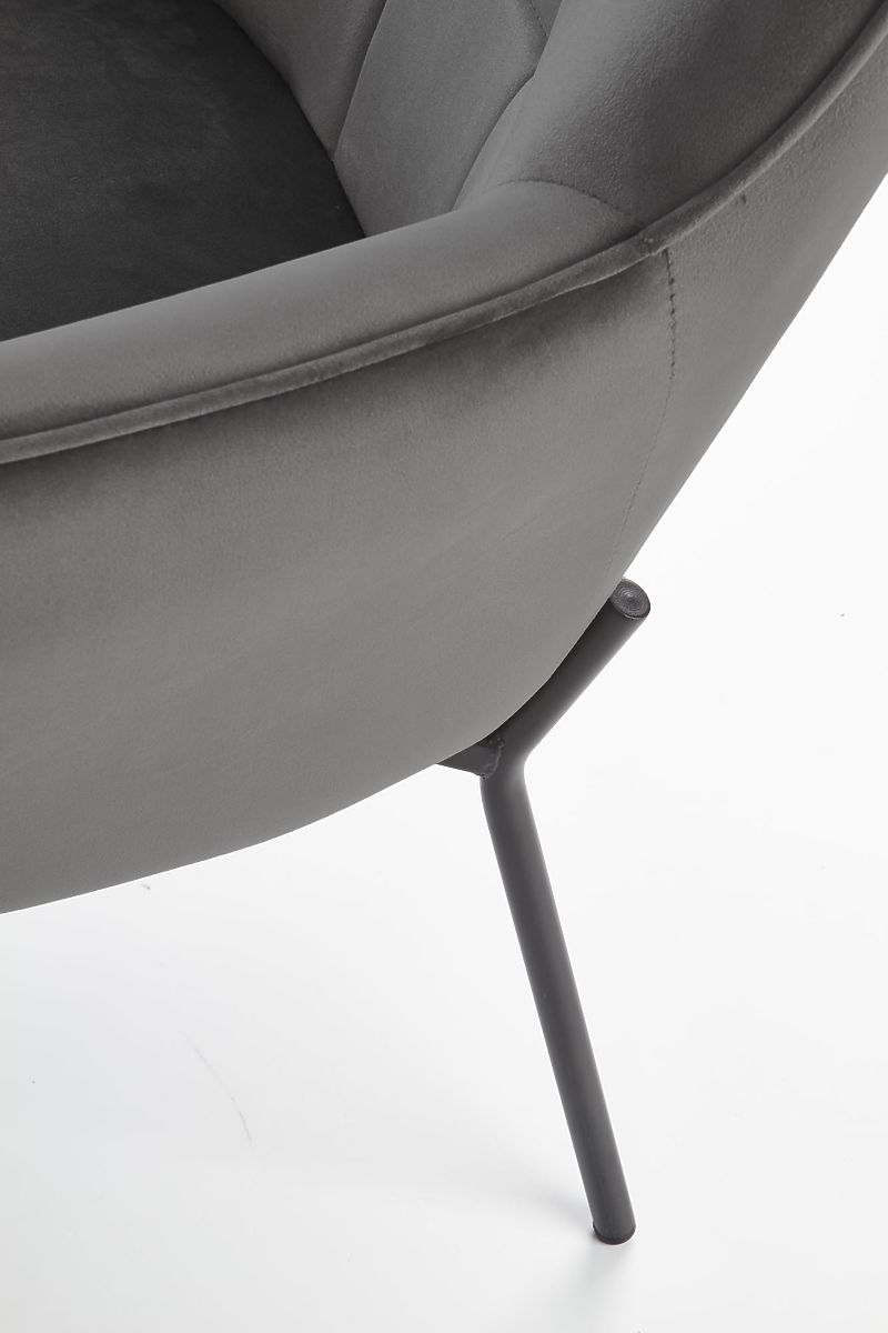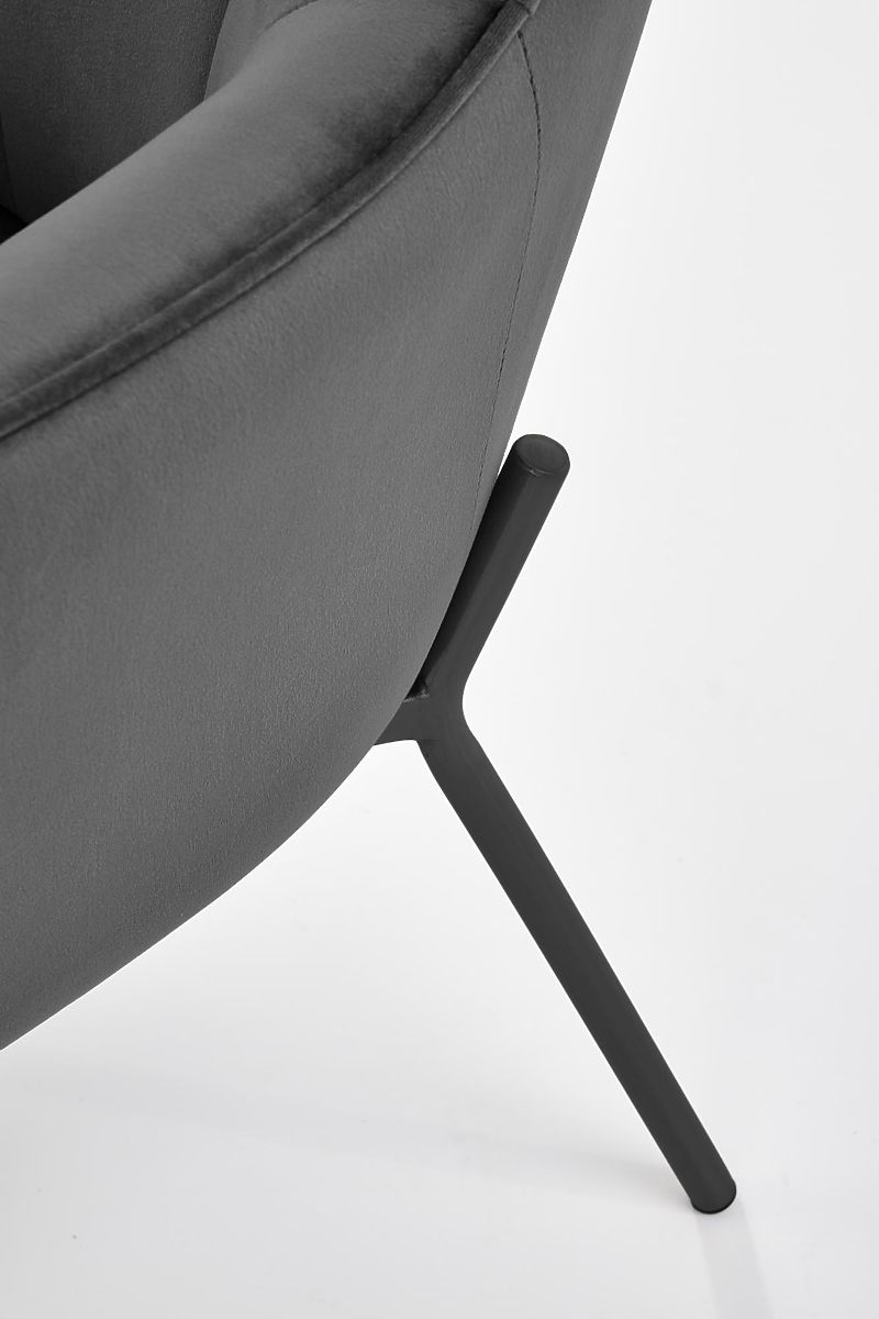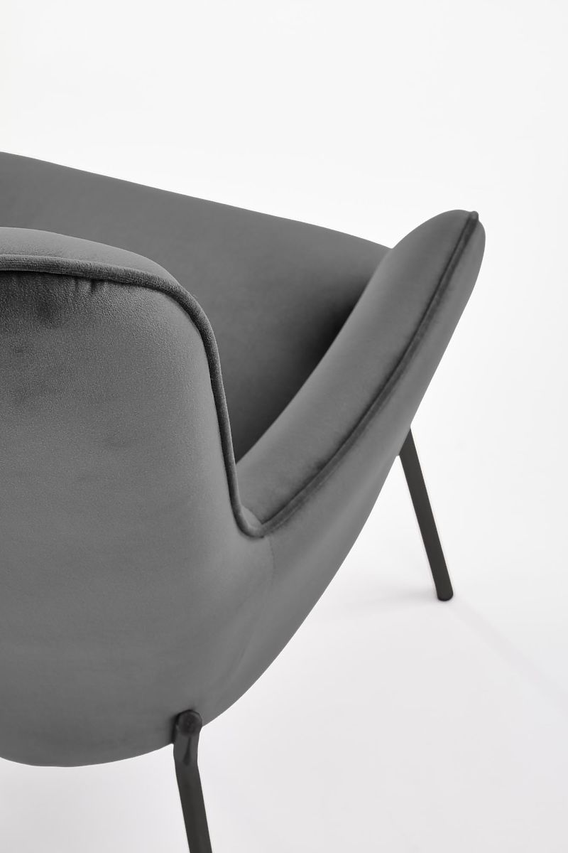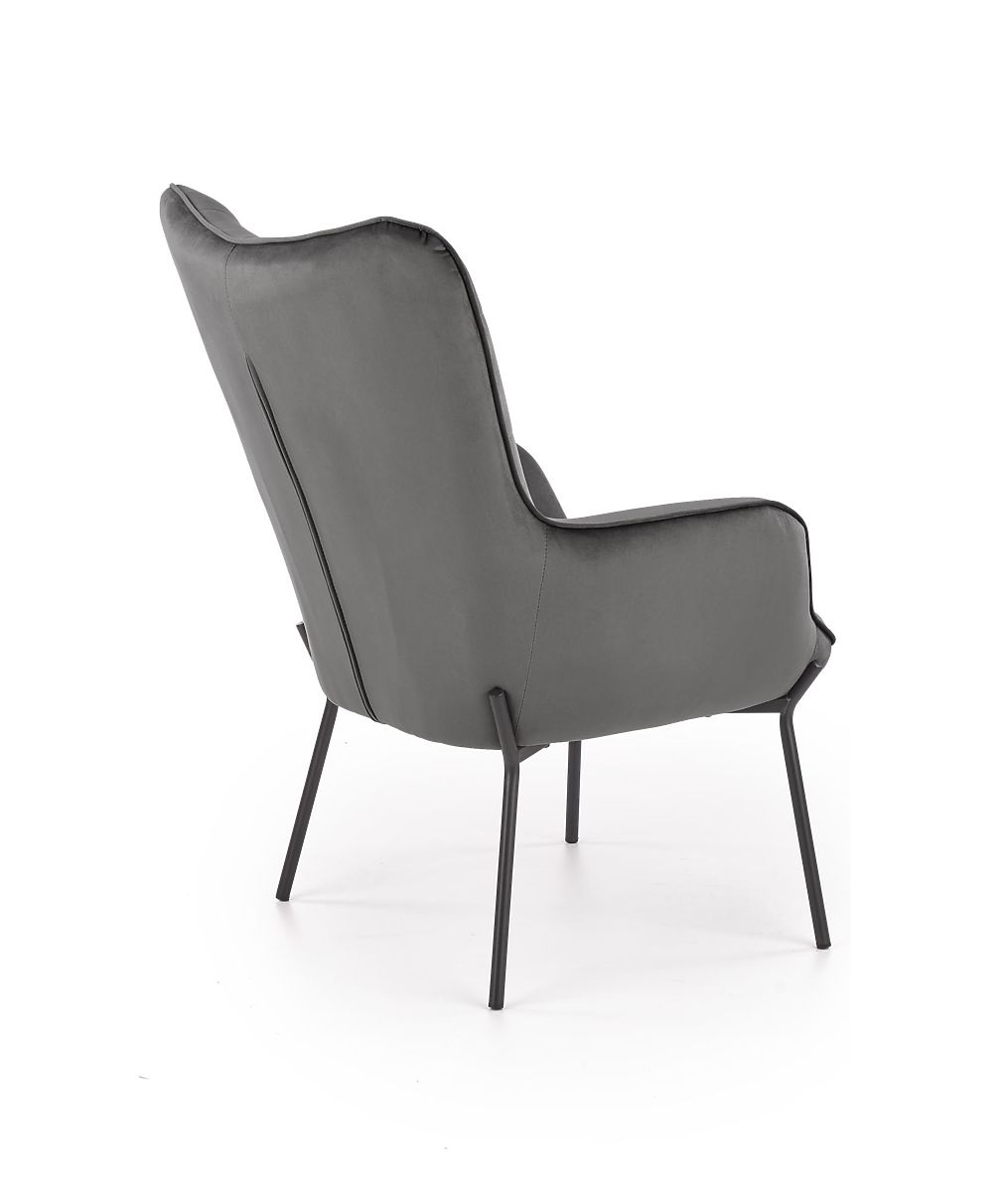 Relaxation chair with gray upholstery and black legs. .. more