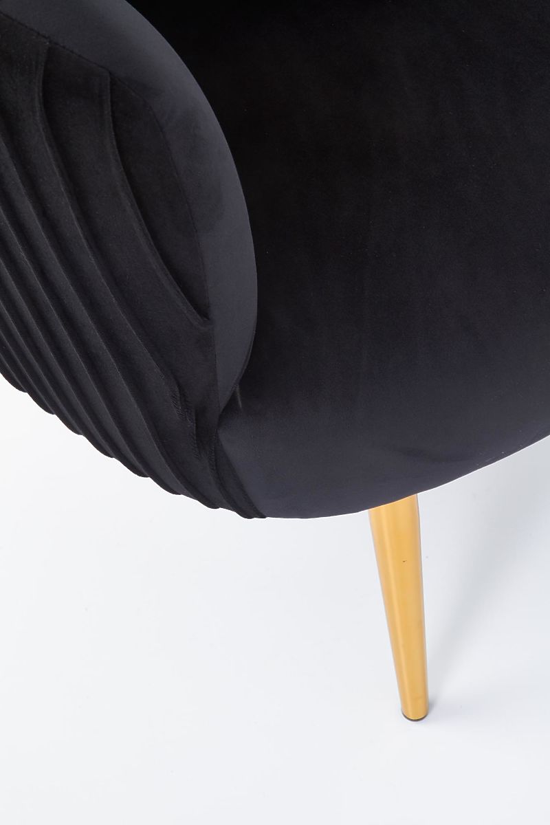 Black and gold relaxation chair with fabric upholstery. .. more